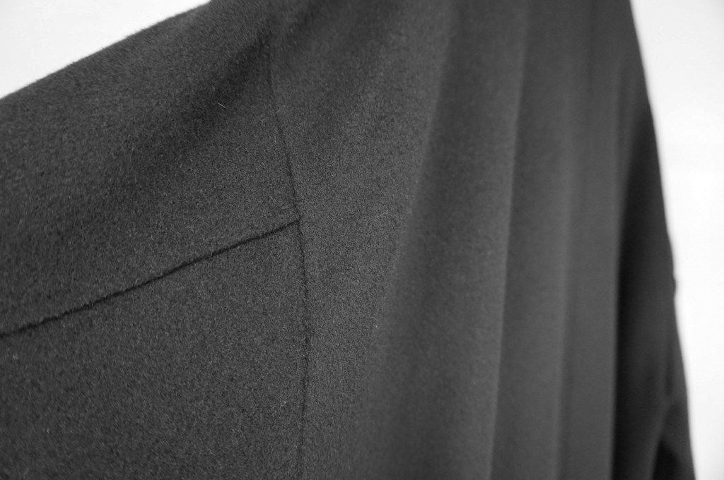 このデザインとフォルムに対して柔和な印象が必要と感じたため、ハリも少なく膨らみのあるメルトンを用いています。癖がなくデイリーな表面感。
