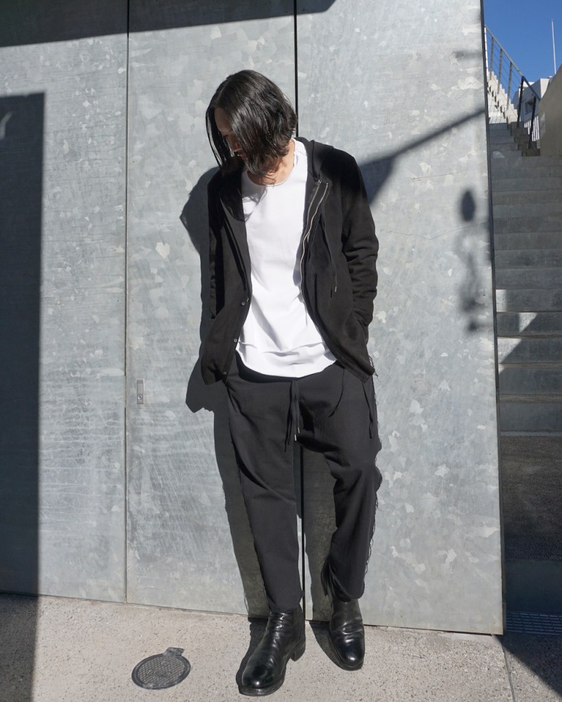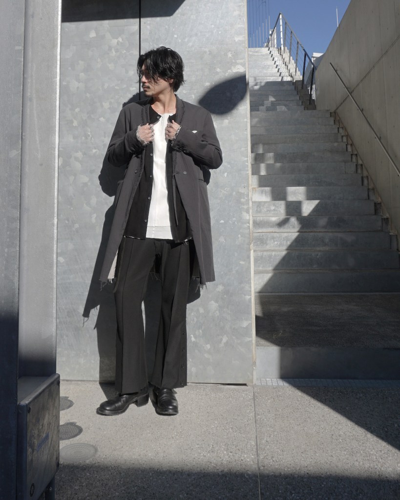 ASKYYらしい細身の仕上がりで、オーバーサイズとは逆に位置します。