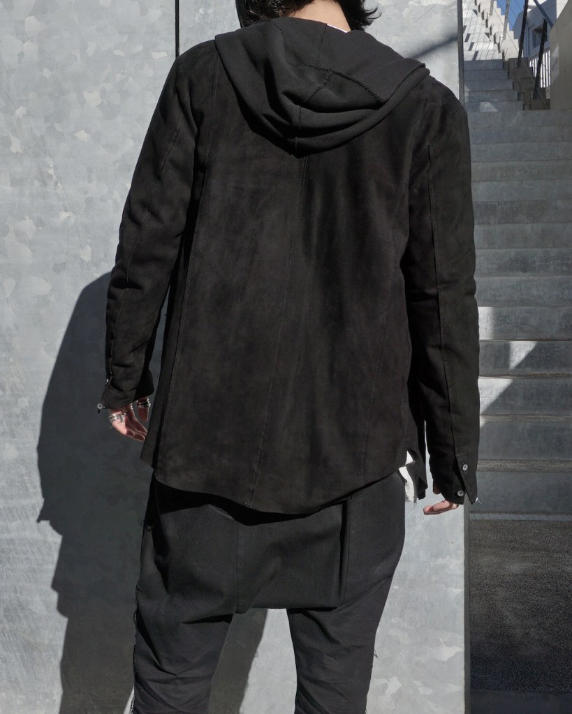 あと、着用する上でのご注意点ですがスエードレザーなので、多少のボソボソが出てきます。(あの粉っぽいやつ)着用ごとに落ち着いてはきますが、スエード製品の特色としてご理解くださいませ。最初は同系色のインナーを着用されるのが良いかと思います。(裏技ですがライターで炙って出なくする方法もありますよね、、)