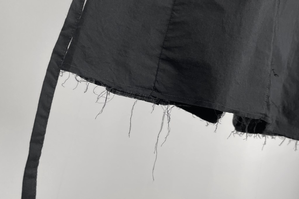 紐が邪魔な場合は収納、もしくはコートっぽく後ろで軽く結ぶか。お好みでアレンジが可能となります。