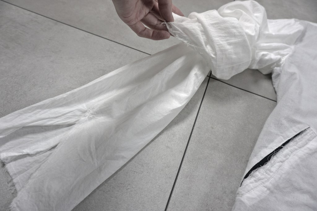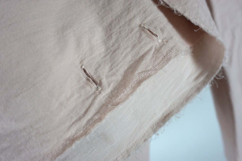袖口のみのレイヤードは着用感が軽くなるというメリットもありましたが、透けが気になるというお声もいただいておりました。たしかに秋冬の厚手素材なら気になりませんが、今作も春夏リリースですしね。このタイミングでパターン修正。