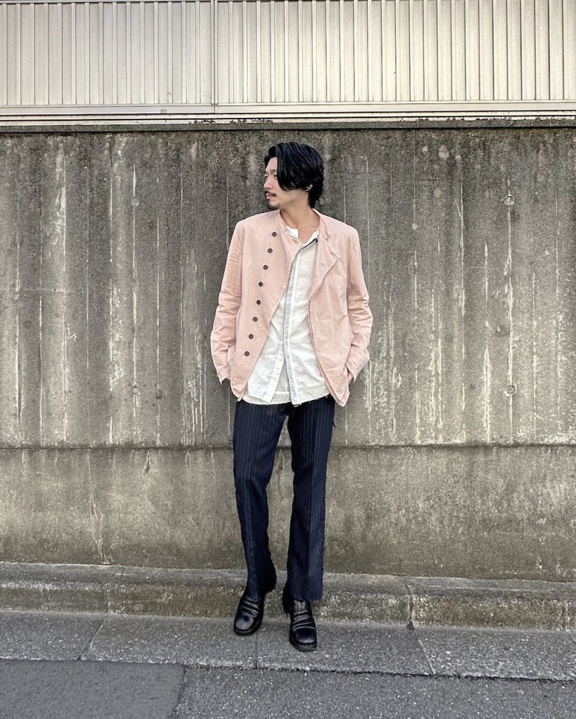 まずオフィサージャケットとしては初となる色物「PINK」。
