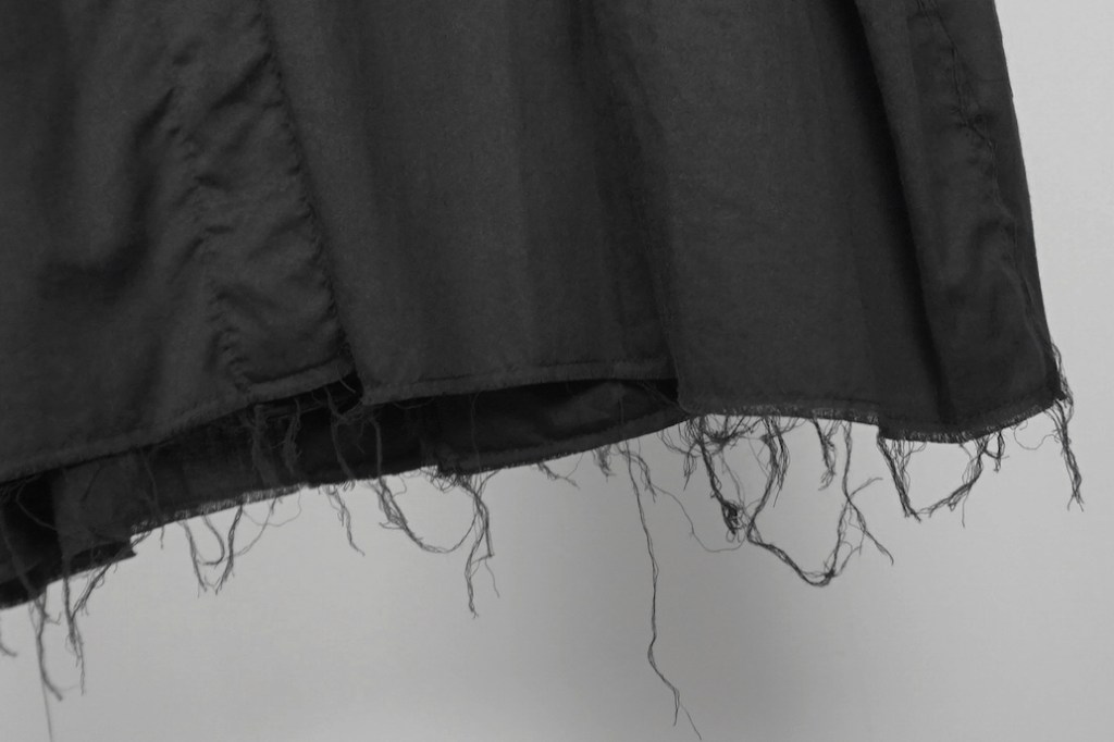 フロントも左身頃が2枚になっているアシメ仕様なので、背面もそれに準じて統一。
