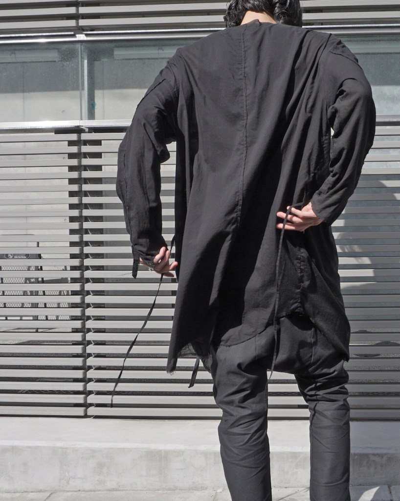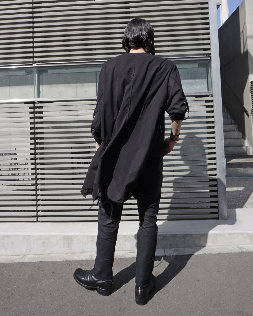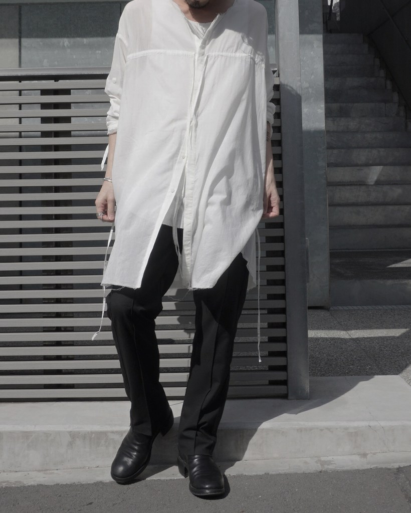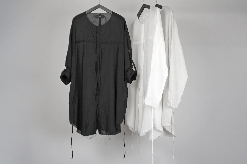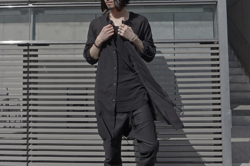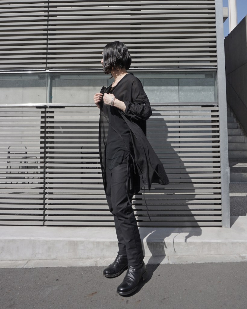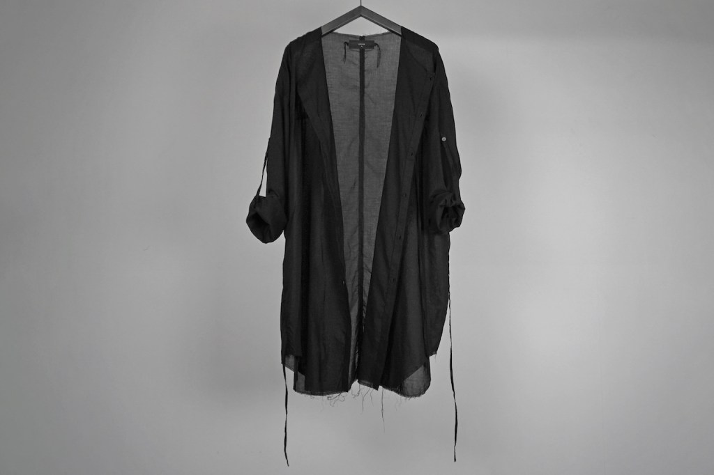 黒ロングシャツ、皆様もすでに多くお持ち頂いているかと思いますが、今回のシフォンシャツはまた違う印象かと思われます。