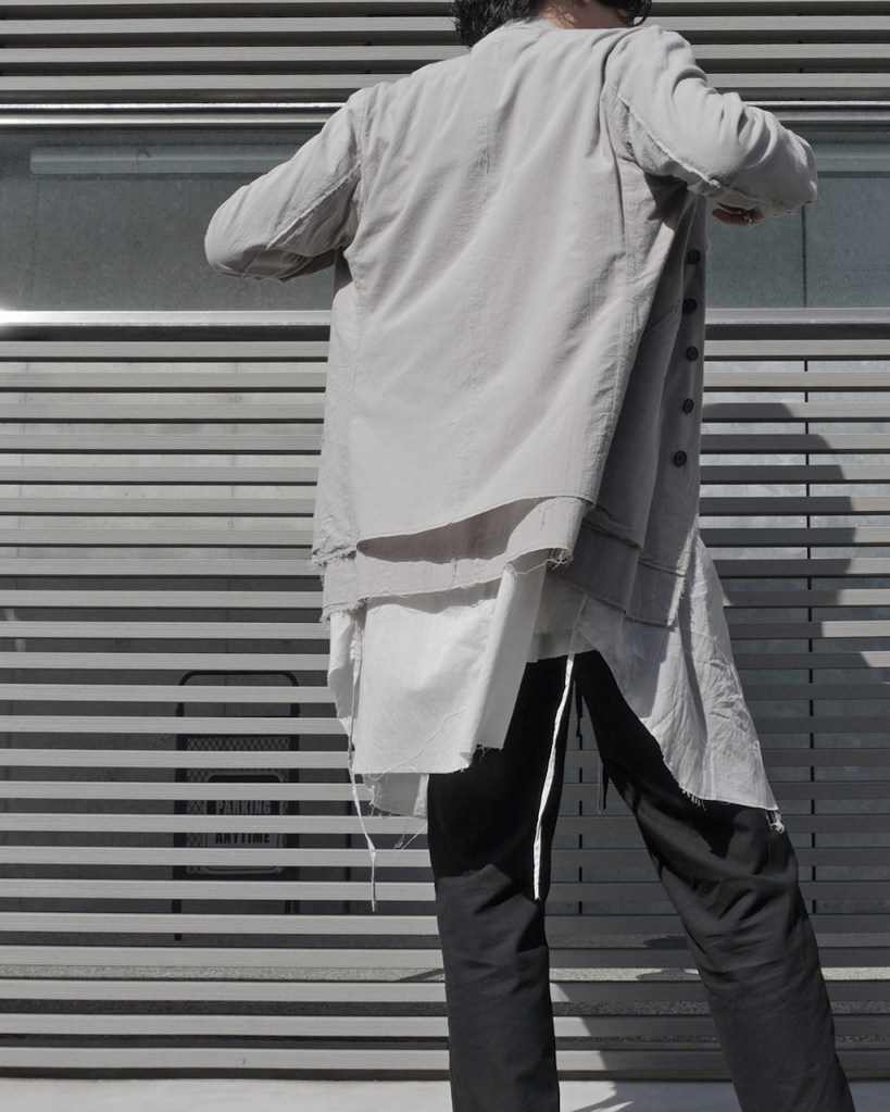 ショート丈の羽織にショート丈は定番ですが、ショート丈にミドル丈でなんとなくASKYYっぽいバランスになるのって伝わりますかね?