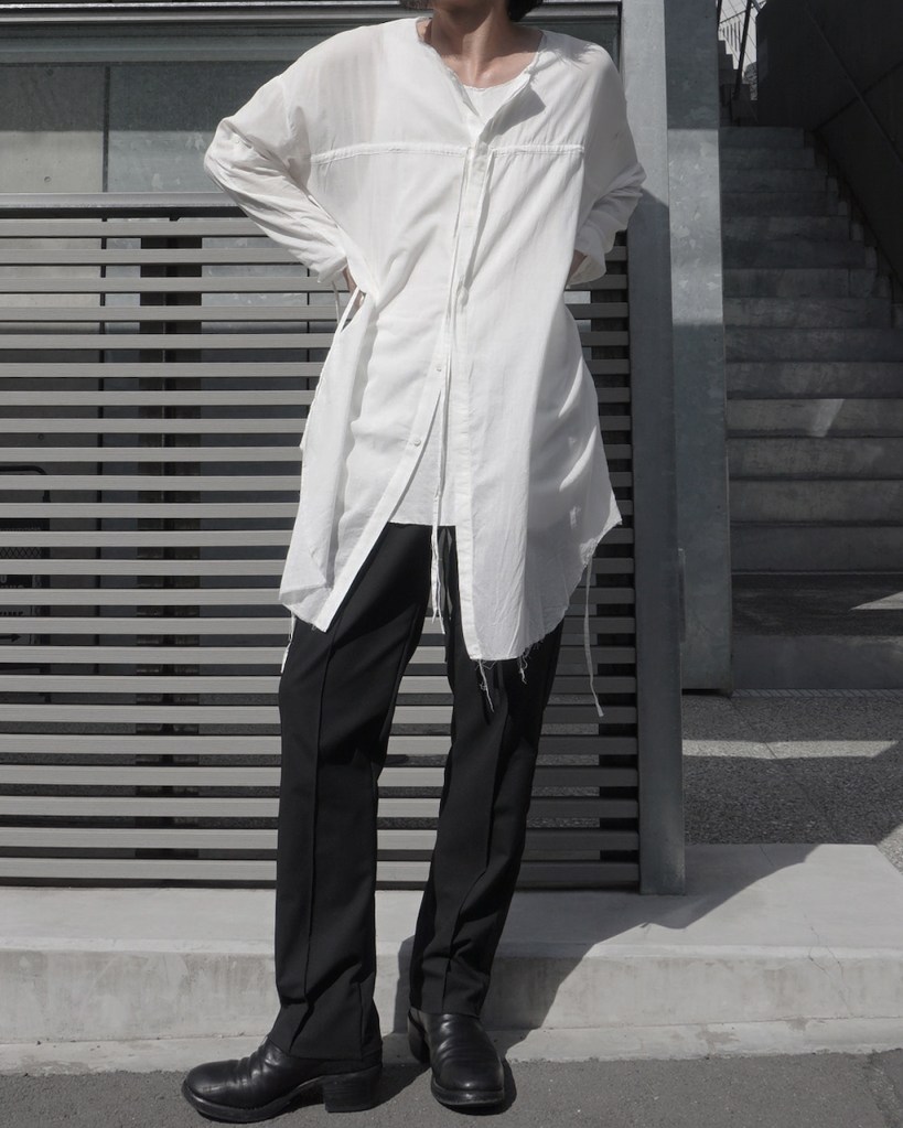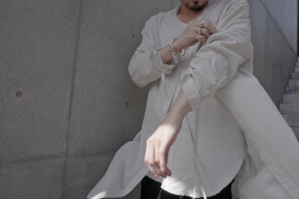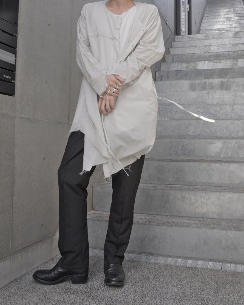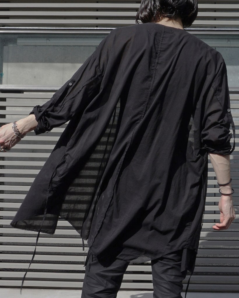 例えばそのお持ちの黒ロングシャツに重ねることで大きく印象を変えることも可能です。黒に関しては透け感も抑えることが出来るので、そういった部分が気になるお客様は黒がおすすめですね。