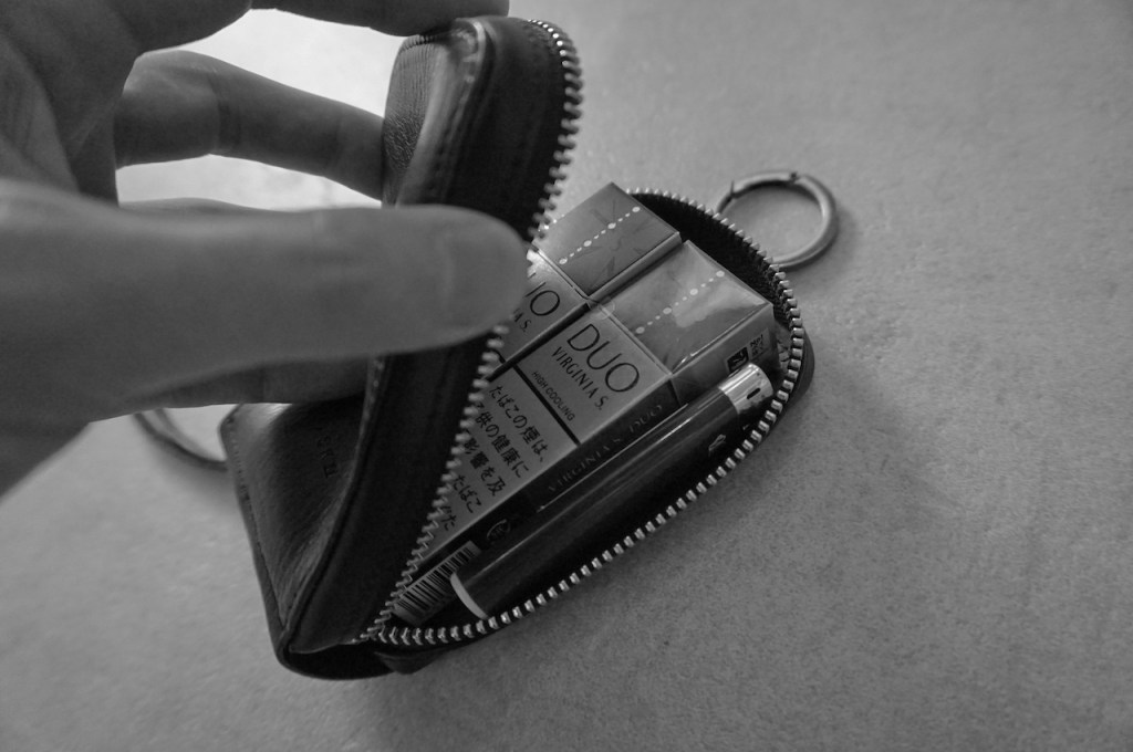 タバコのショートはもちろん、ロングも入りつつ横の隙間にライターも収納可。これ大事ですよね。