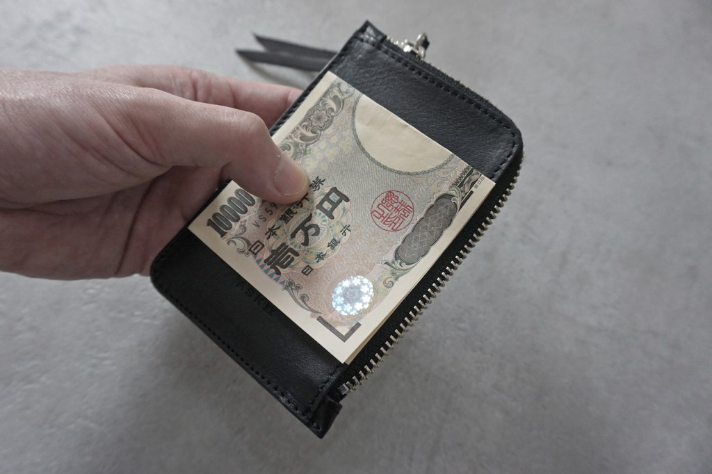 こういったカードケースにありがちなことは、札を3つ折にしなくては入らないことがほとんど。