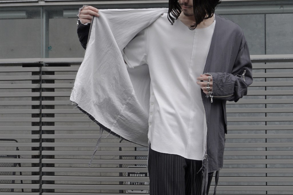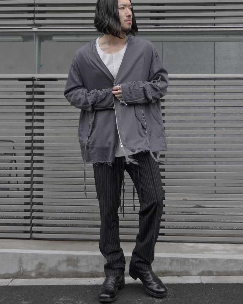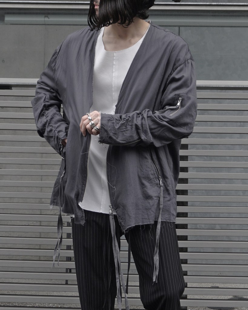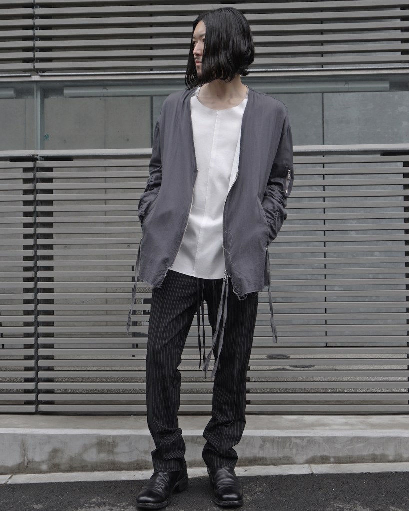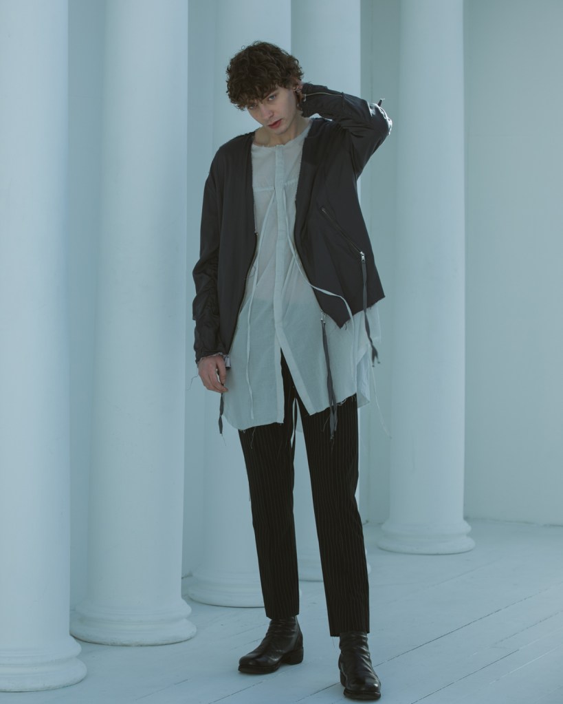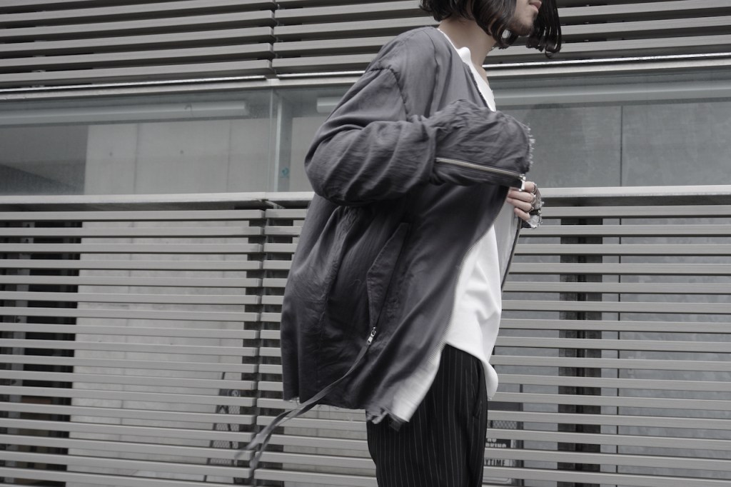 春夏はあの開き具合のルーズさが好きで、そのままフォルムをブルゾンタイプに落とし込めないか というところが起点になっています。