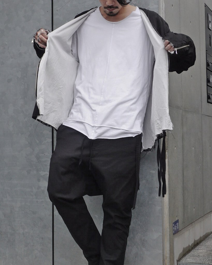 ASKYYは素材で魅せるデザインというよりは、デザインありきの素材という服作りをしているので、素材はむやみに新しさを求めて冒険をせず、「形」に集中し尽力してきました。(素材も素材で大変奥が深いですが、それは現段階でASKYYの役目ではない)