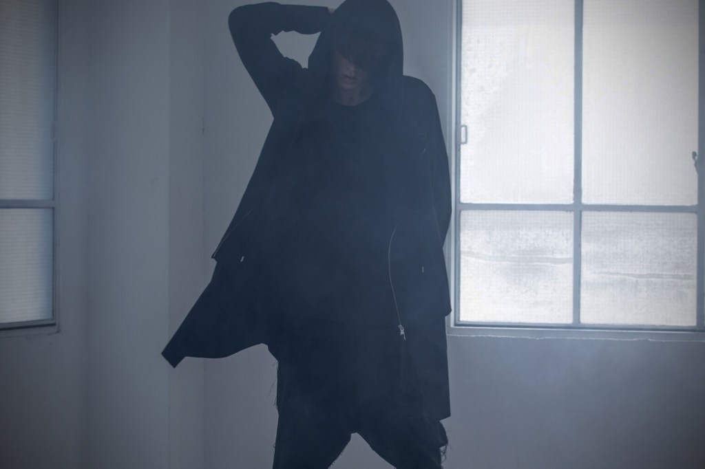 フードも大きく設定し、ルーズな印象を強調させてます。