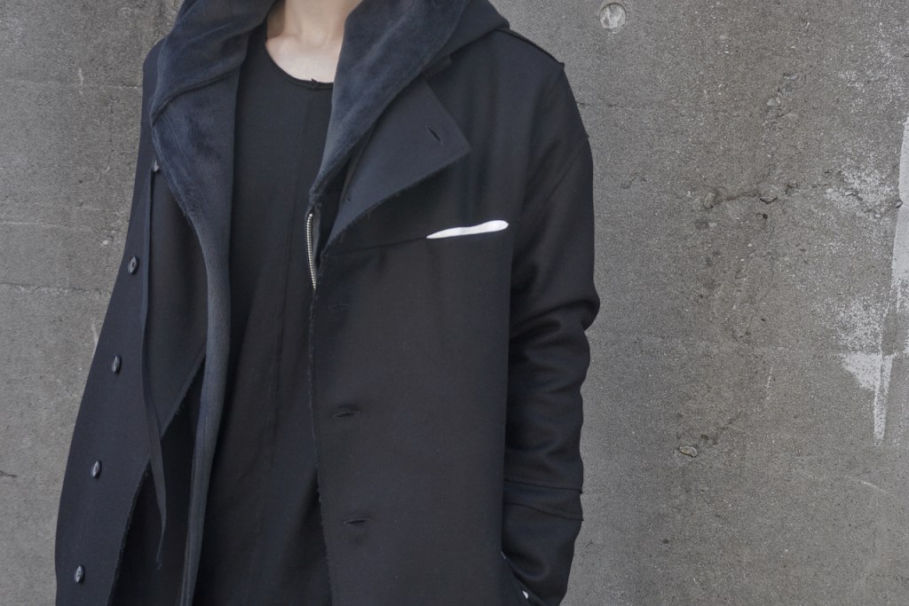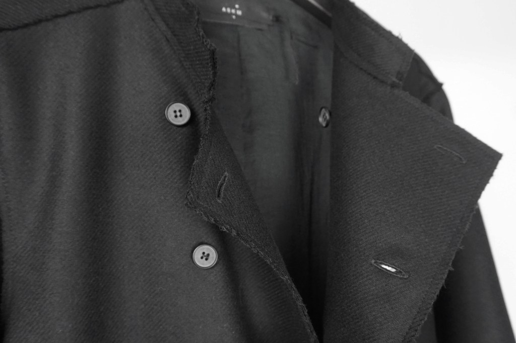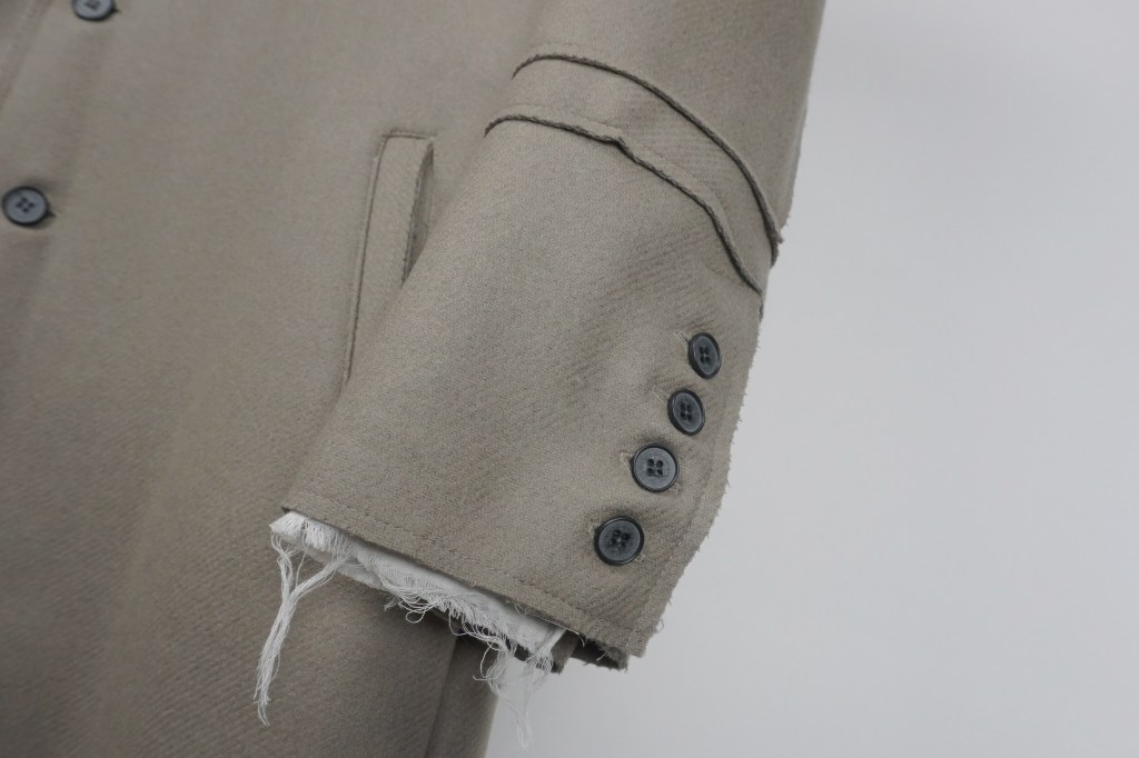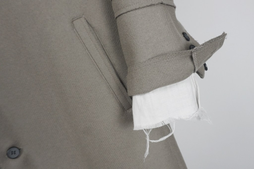 この部分も裁ち切り仕様なので糸の吹き出しの感じがコートの「堅苦しさ」を緩和してくれます。