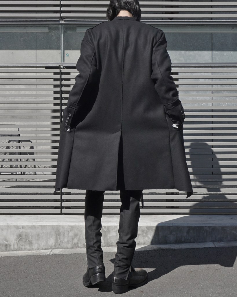 素材は変われど、初回のナポレオンコートとほぼ同じ見た目と質感のBLK。