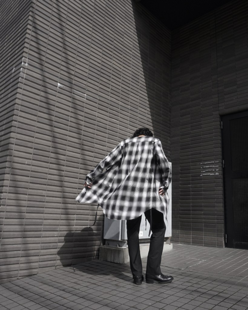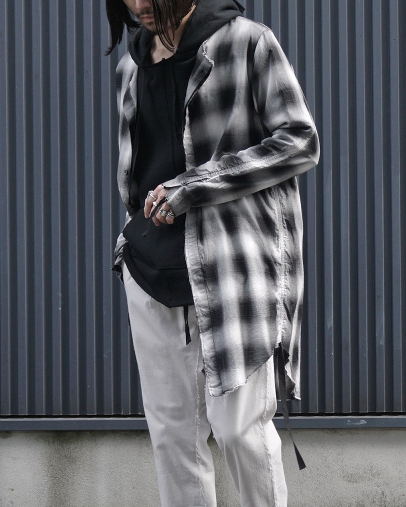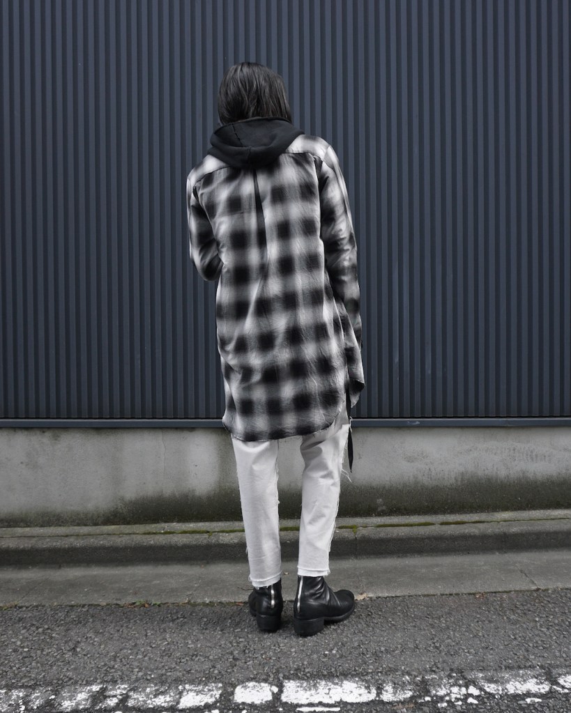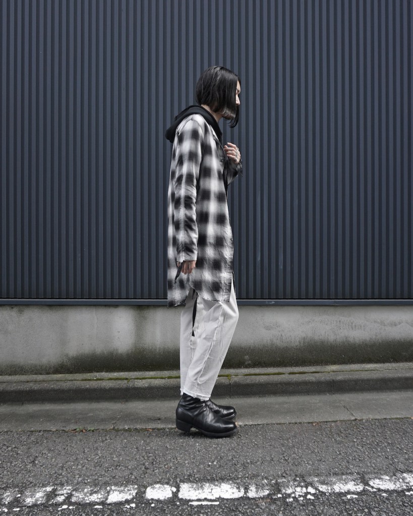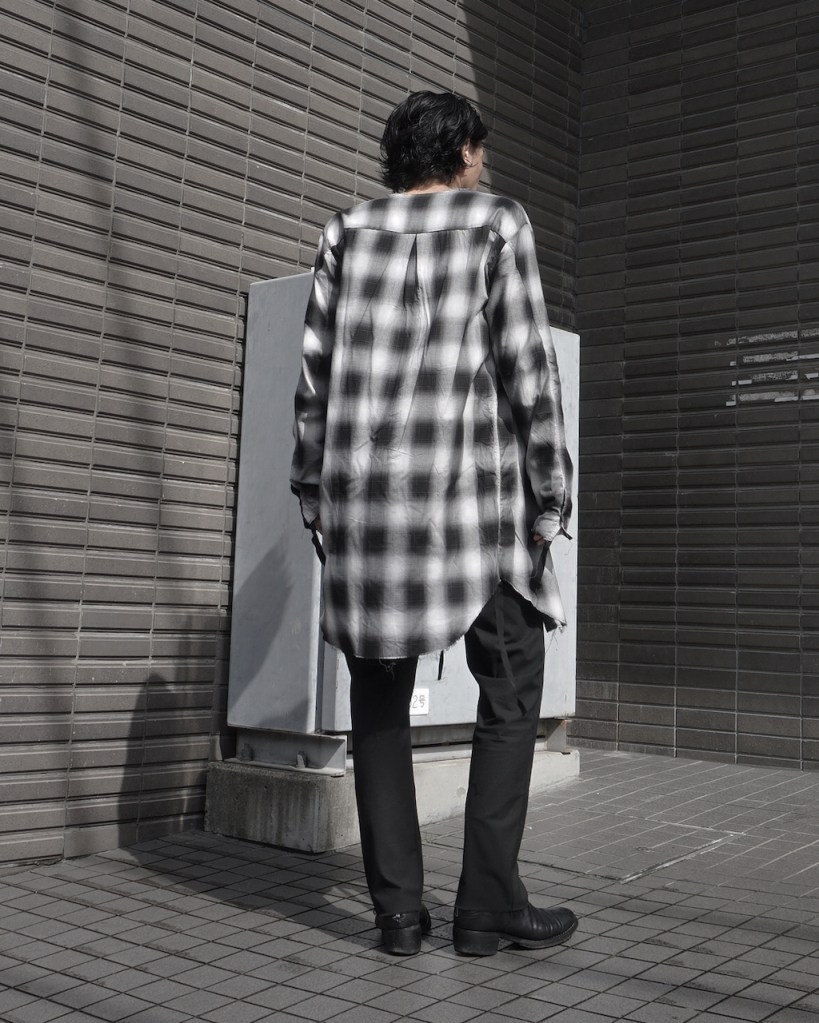 チェックかつロングのシャツでしか成し得ないスタイル、十分にお楽しみ頂ければ嬉しいです。