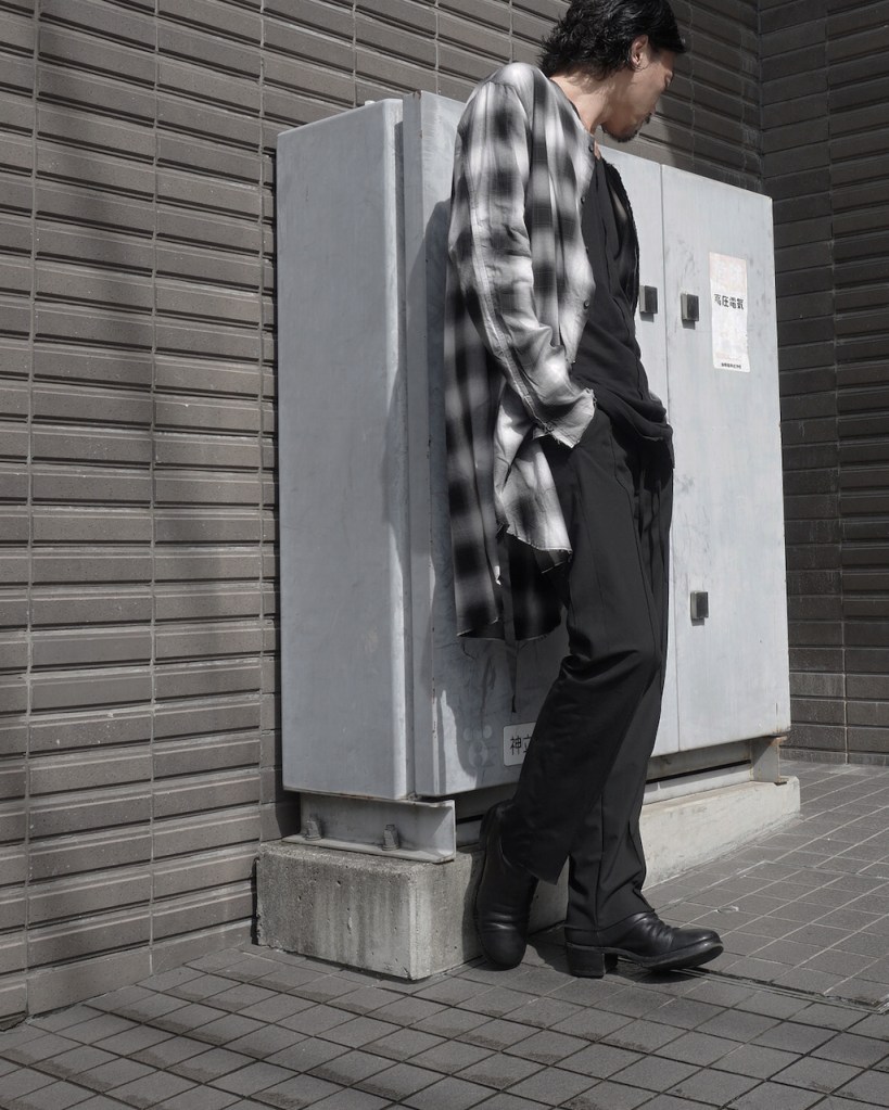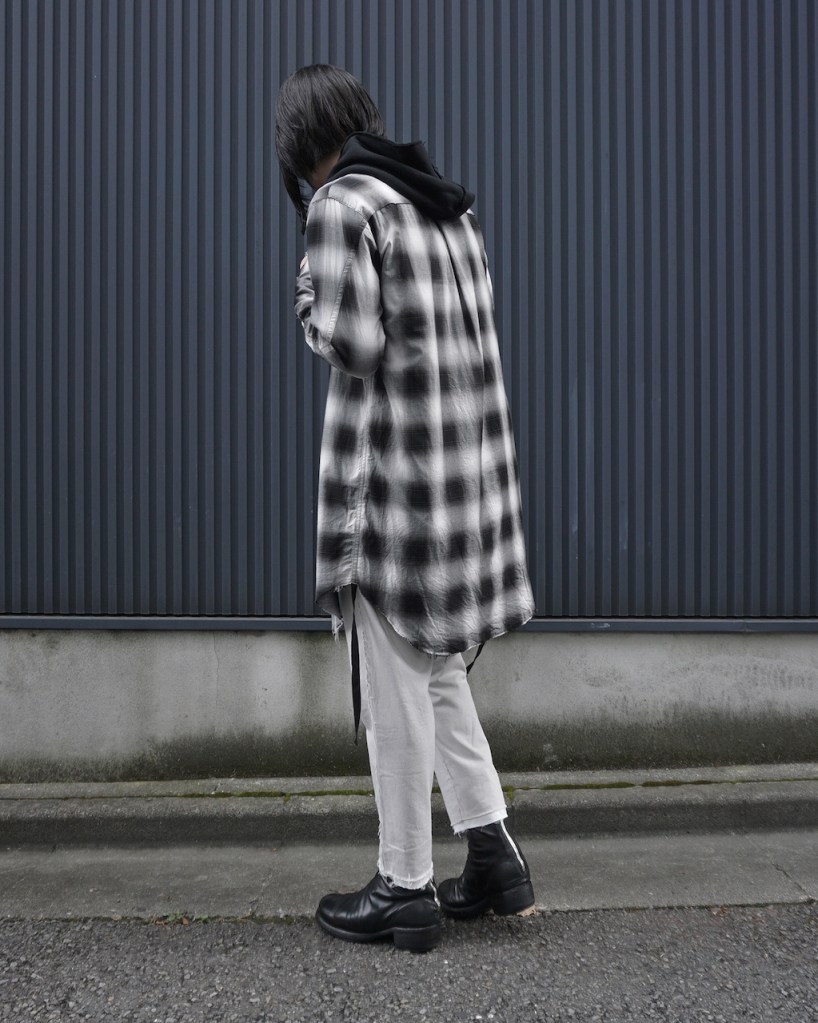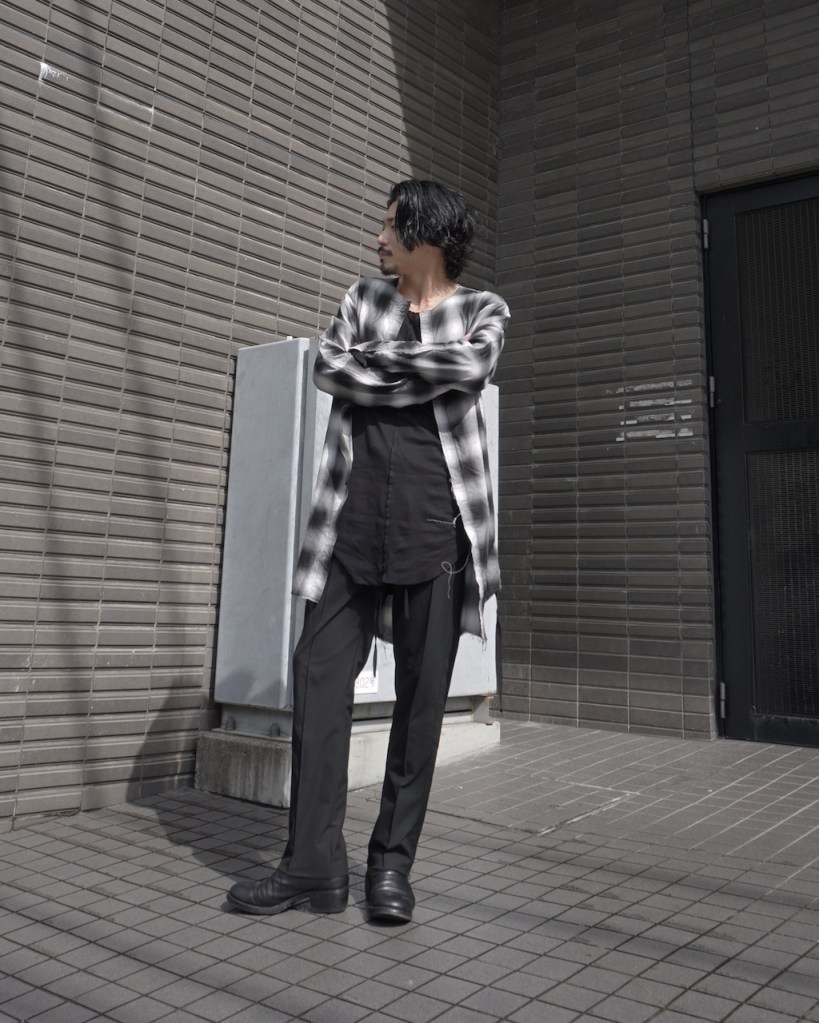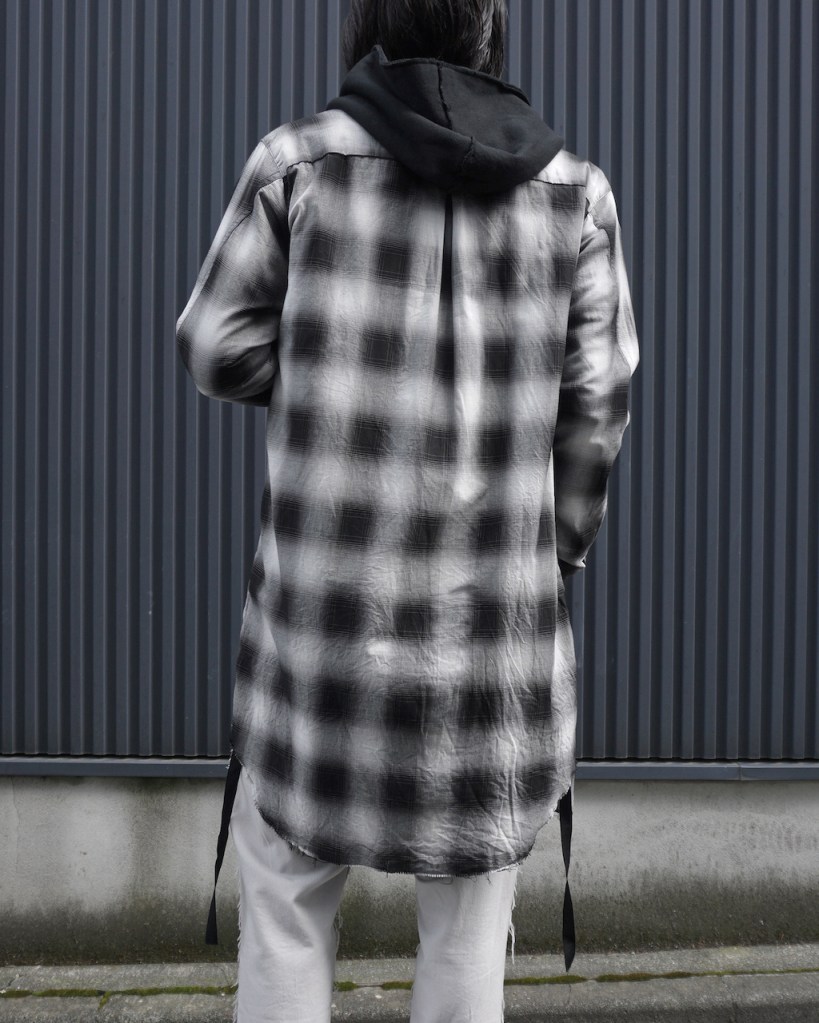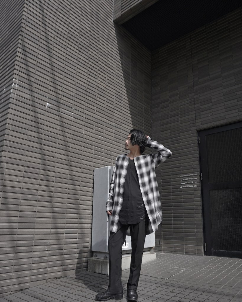 チェックかつロングのシャツでしか成し得ないスタイル、十分にお楽しみ頂ければ嬉しいです。