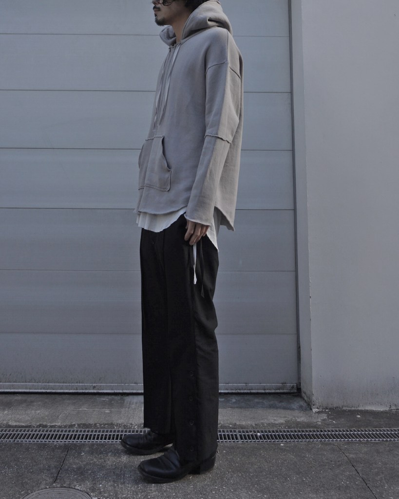 23aw第2作品目は使える無理のないパーカー。