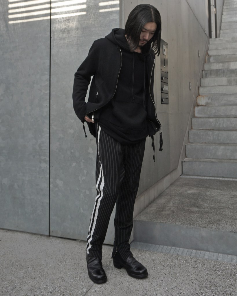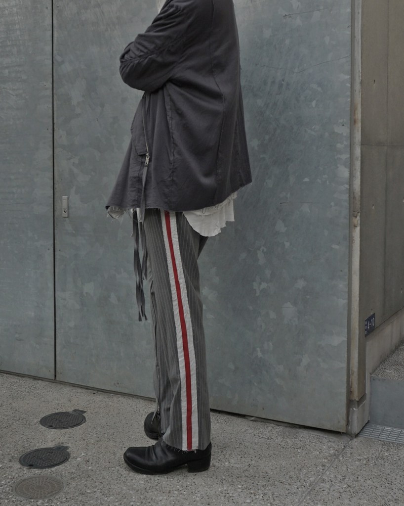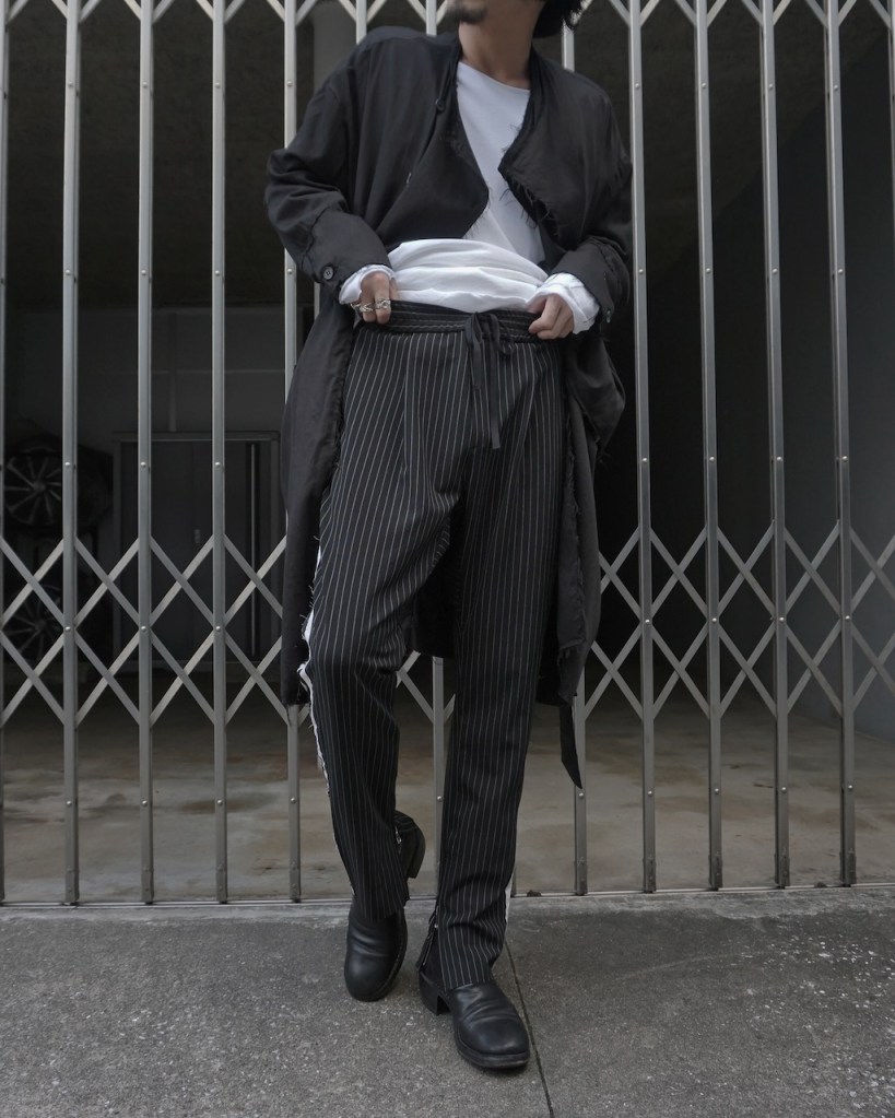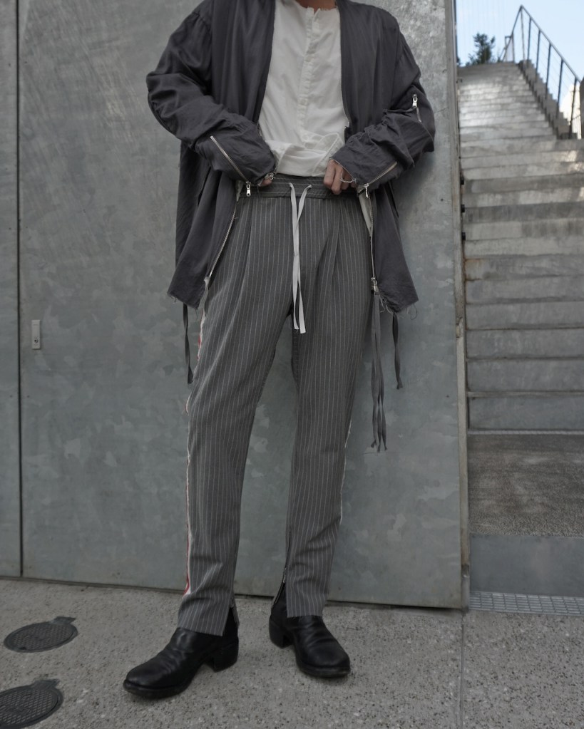 小綺麗なスラックスにプラスされた少しの違和感。その退廃性が真面目すぎない雰囲気を創出。