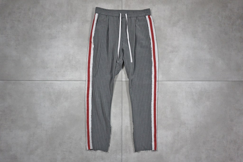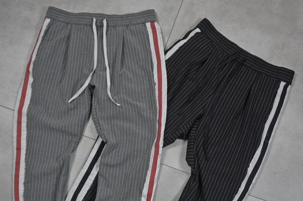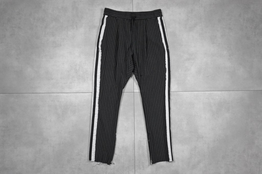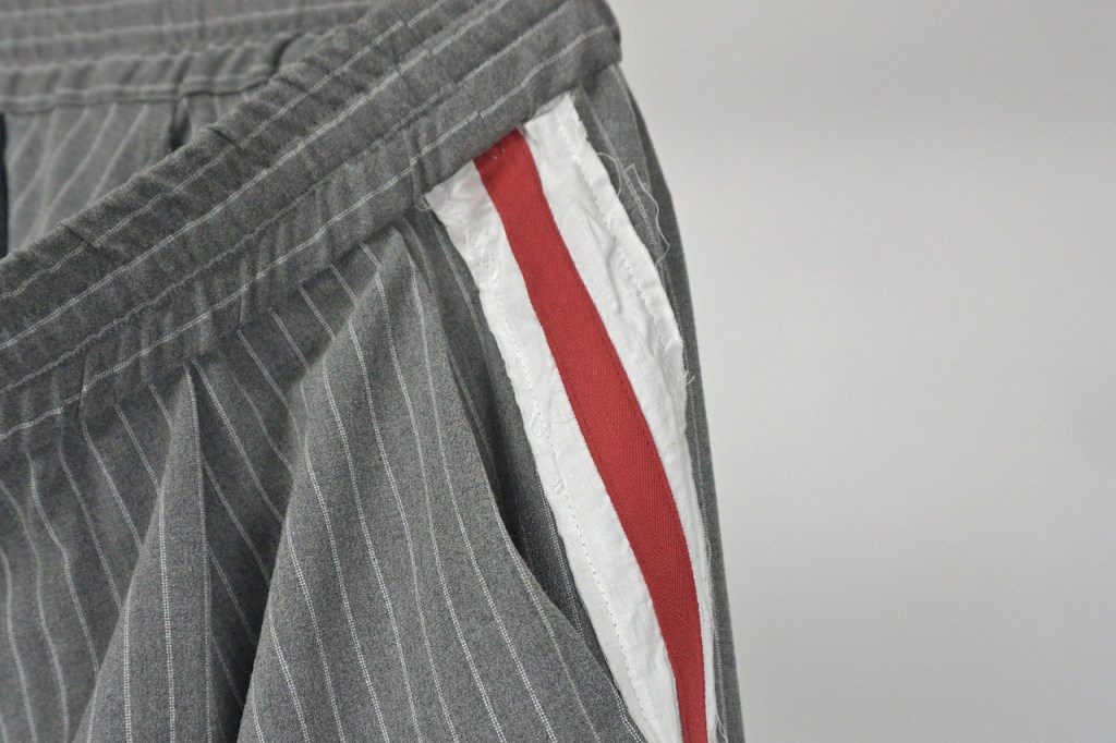 品のあるストライプ生地に、太い側章がアクセントになるスラックス。