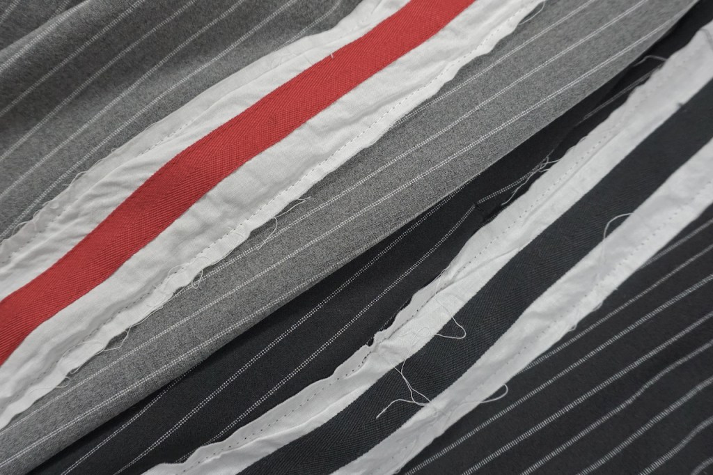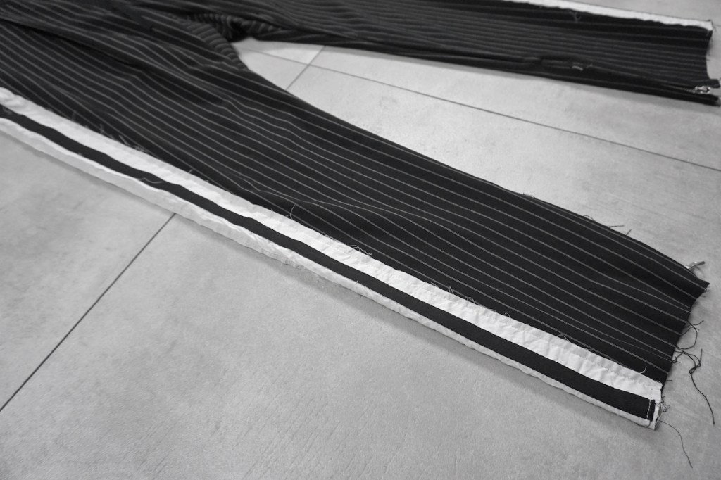 もともとシャツなどで用いられる薄手の生地をわざわざパネルにして縫製。ただのテープによって線を付けているわけではないので割とめんどいことしてます。