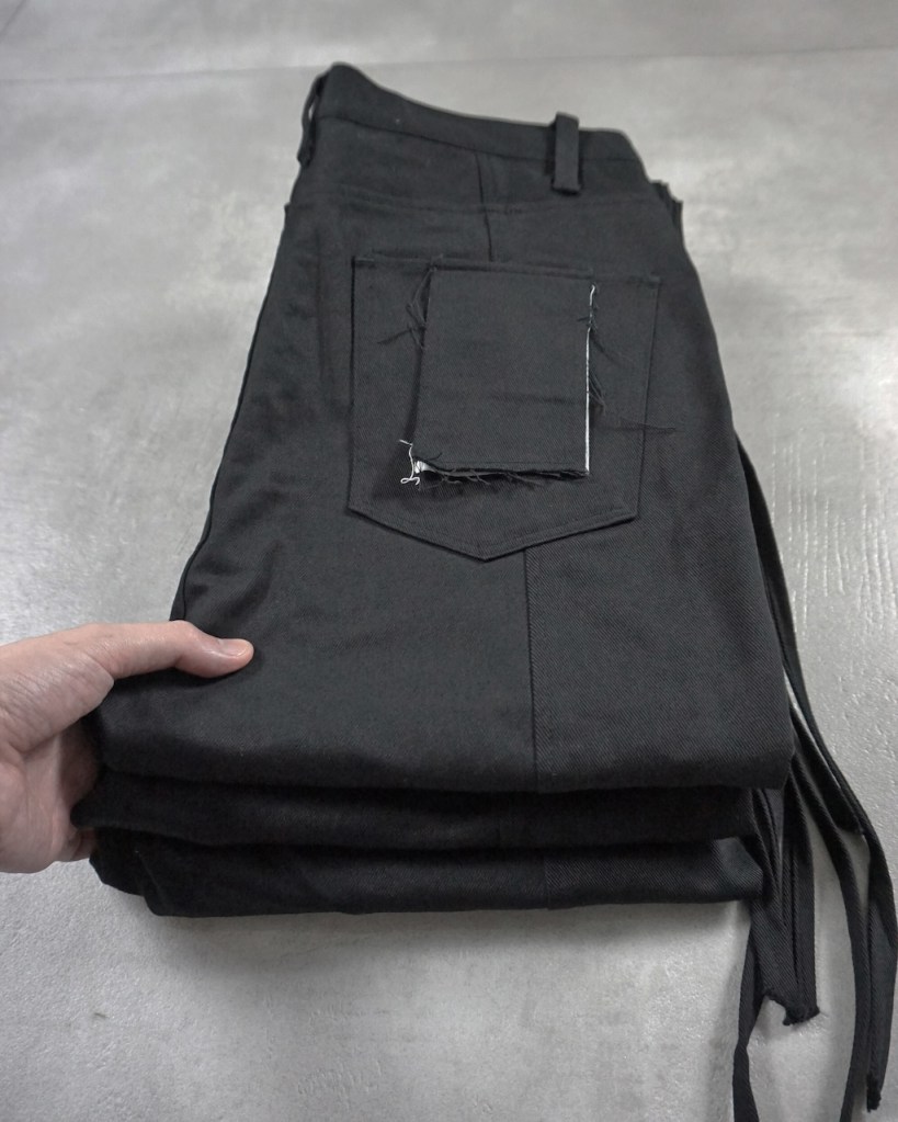 買ったばかりのデニムってここに紙のタグがついていることが多いじゃないですか?あの雰囲気をそのまま服として落とし込めないか、ASKYYらしさを新たに組み込めないかと思い生み出した”新たなアイコン”のお目見え。
