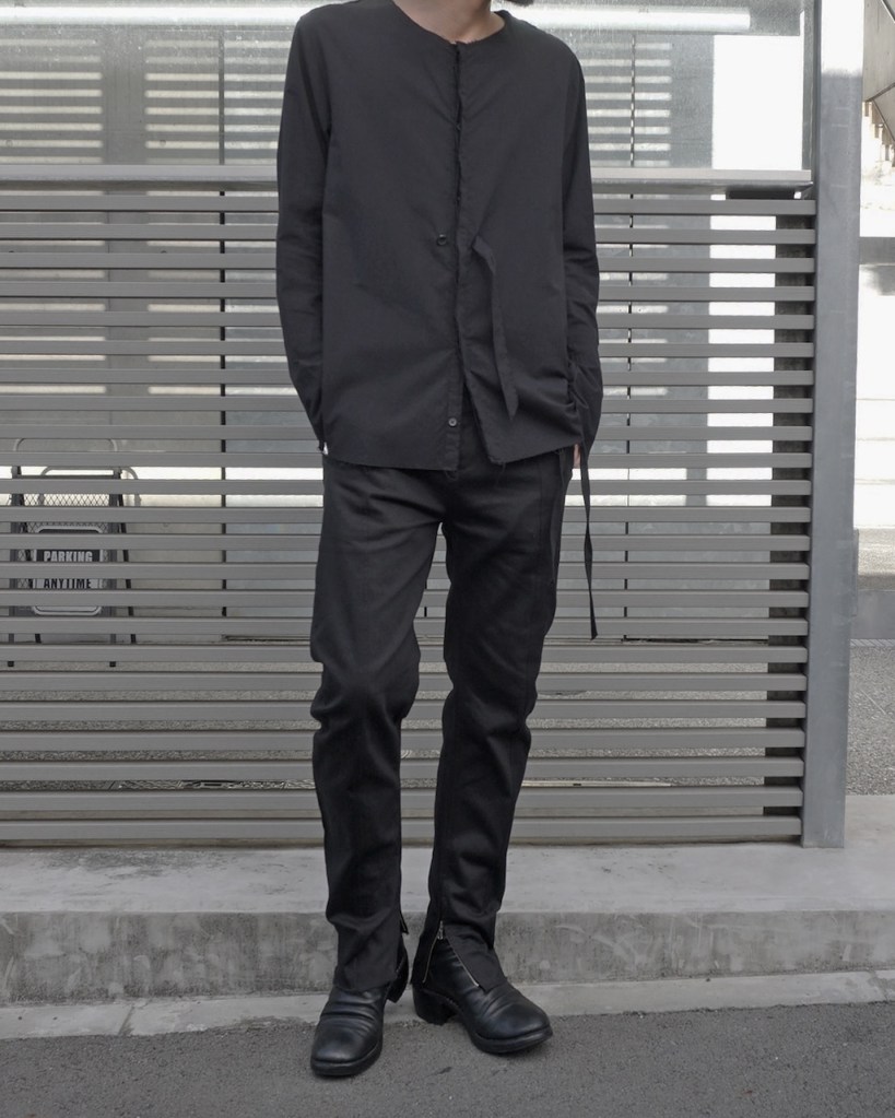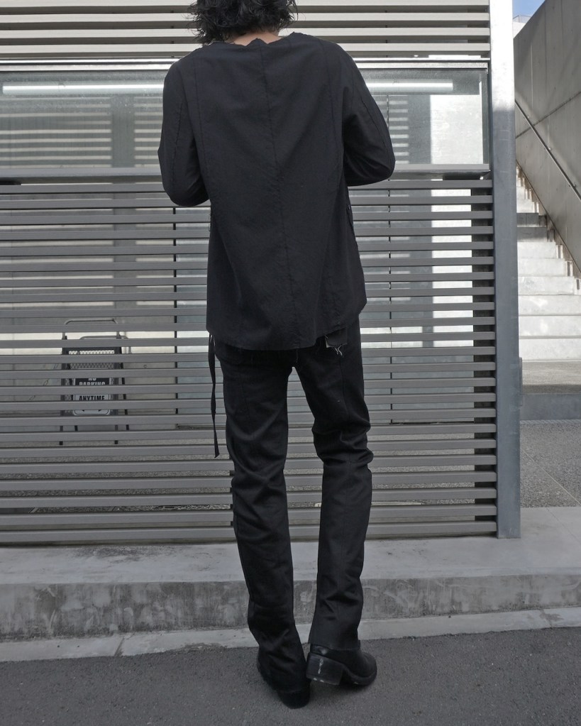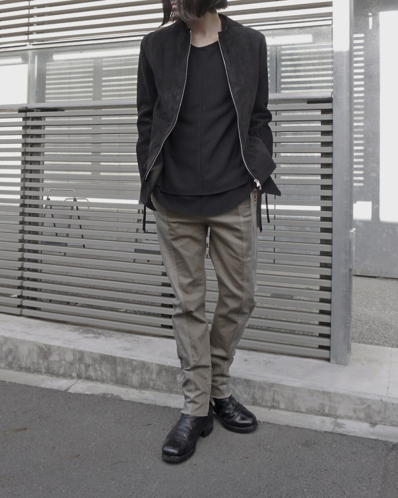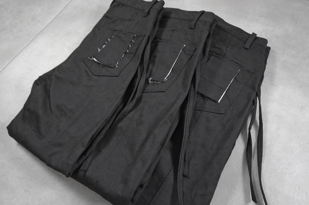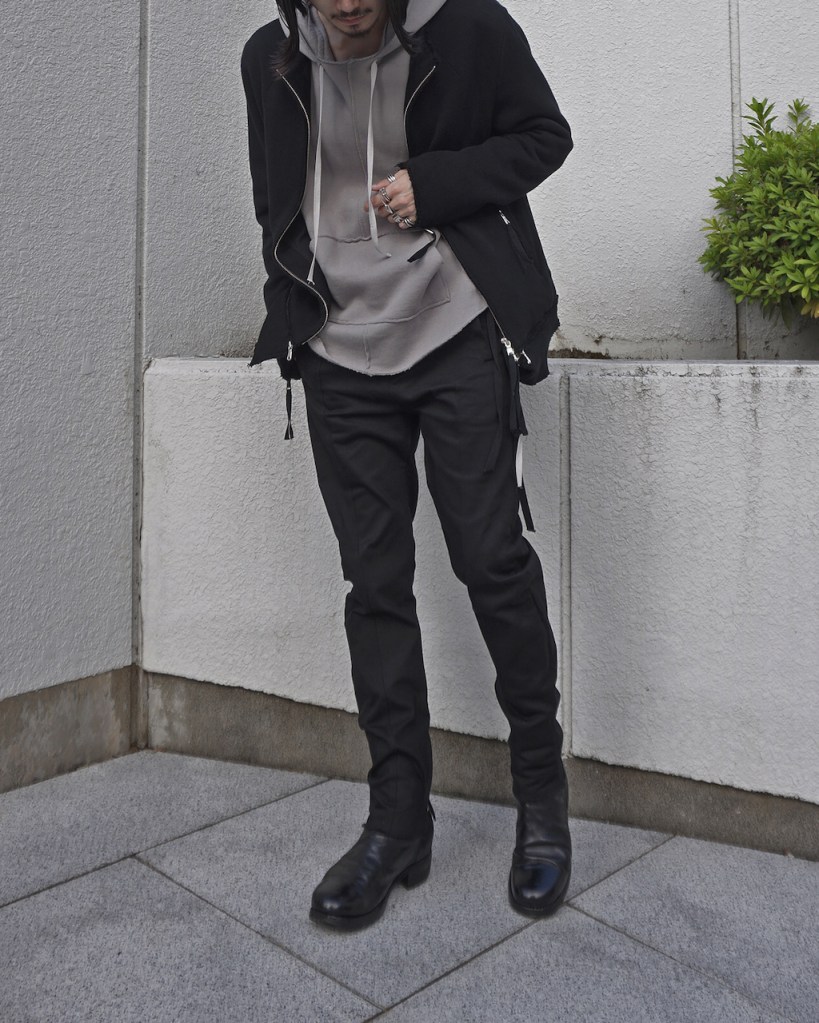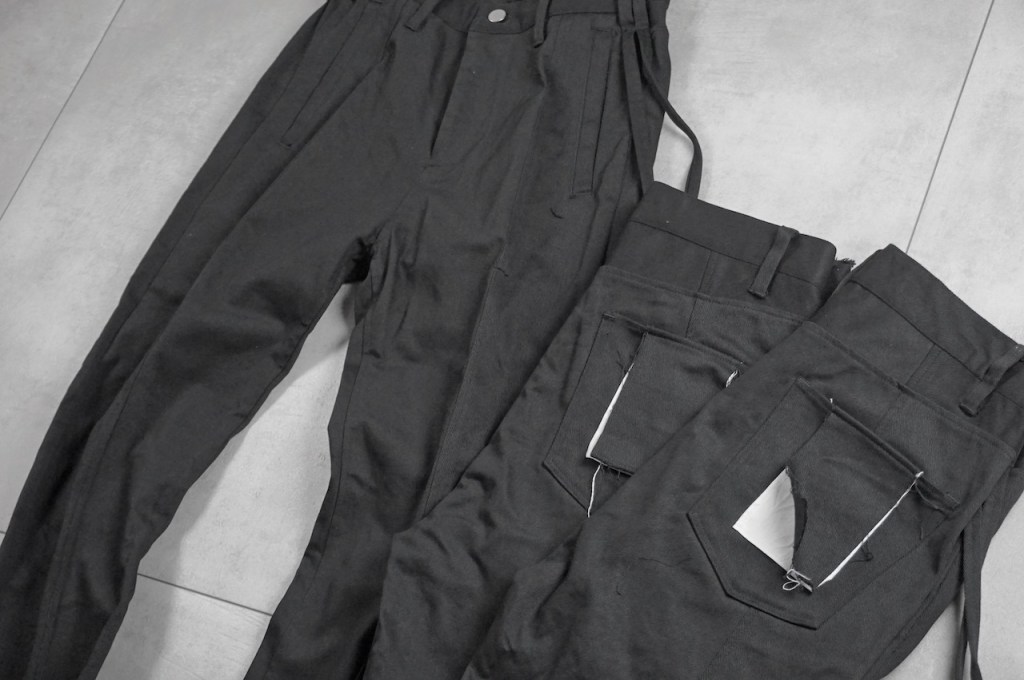 スタイリングの主役をパンツとするアイテムは「アトリエパンツシリーズ」あるいは直近の「トラックパンツ」などがありますが、うちのパンツは基本的にトップスのデザインを活かし軸として支えるようなもの。