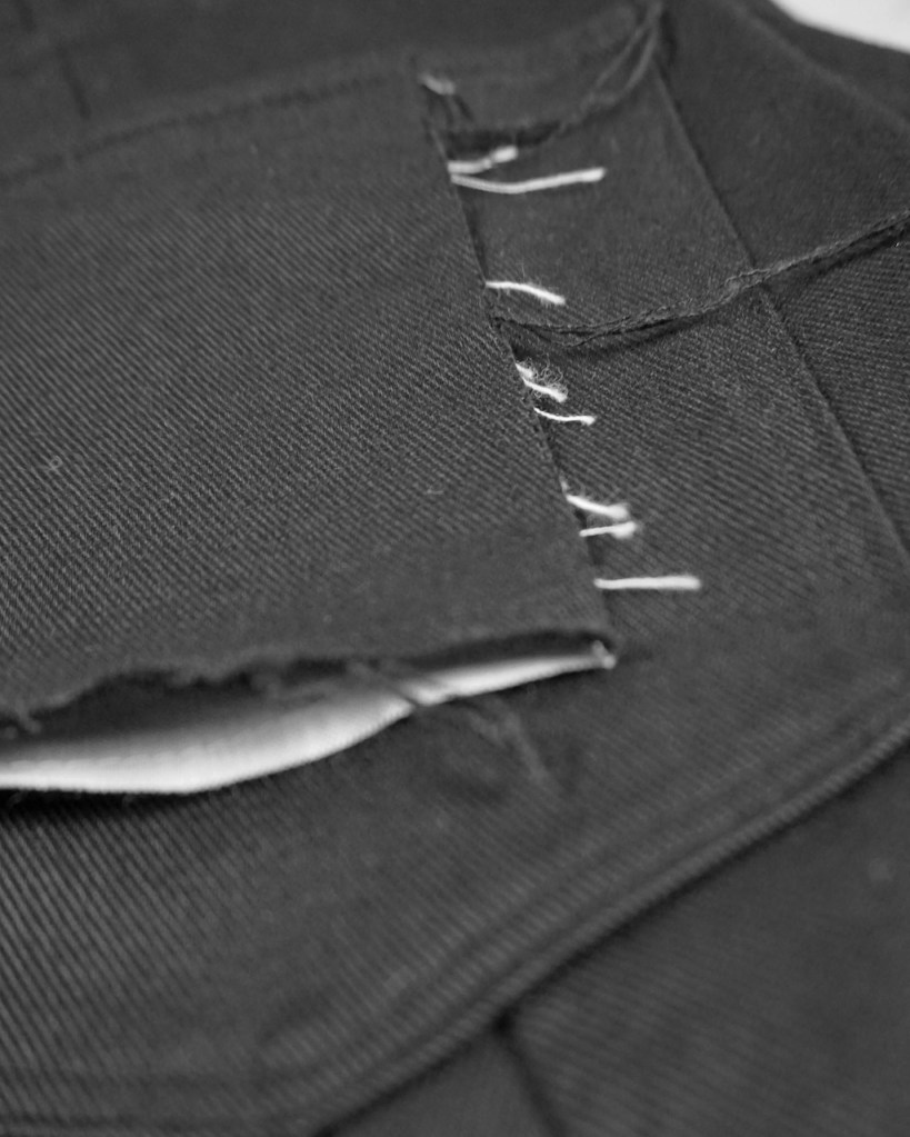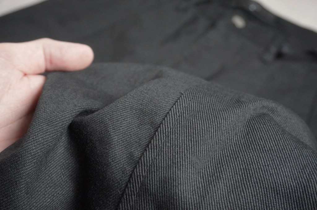 明るいところで見てようやくその差異に気づく程度。この生地選びは本当に時間をかけました。微妙に黒の深度が異なります。