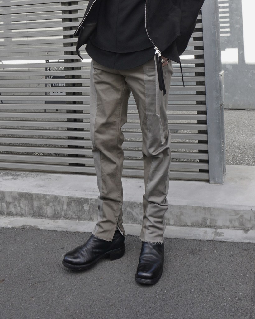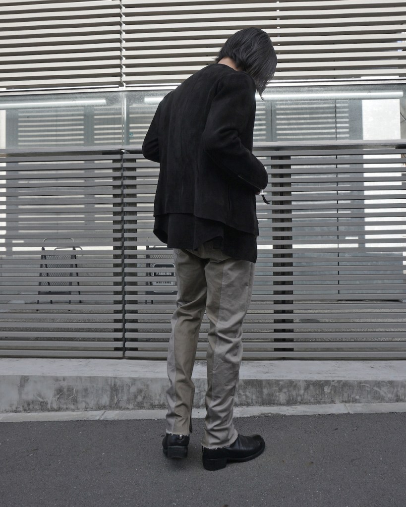 これによって生まれる立体感はスキニーのようなタイツ感を排除し、無骨な雰囲気に仕上がります。