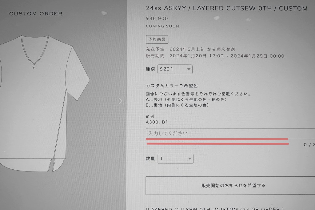 ◼️イベント内容 レイヤードカットソー0THの定番色の再販および、ご希望色でのパーソナル受注生産