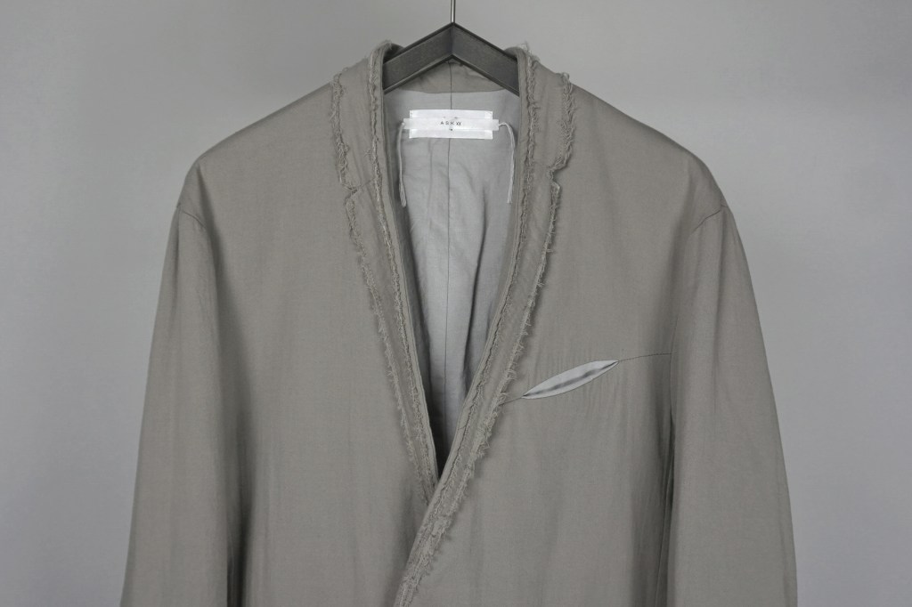 ノーカラージャケットにノッチドラペルを後付けしたデザイン。