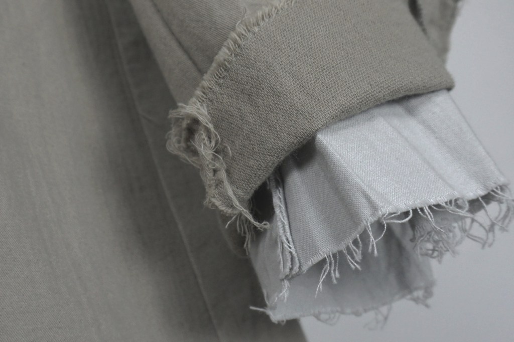 今でも大好きな個人的名作。その時の色展開はBLKとKHAKIの2色展開だったのですが、アーカイブコレクションの発表に伴い制作した特別な限定色が今作のGREYSH BEGでした。