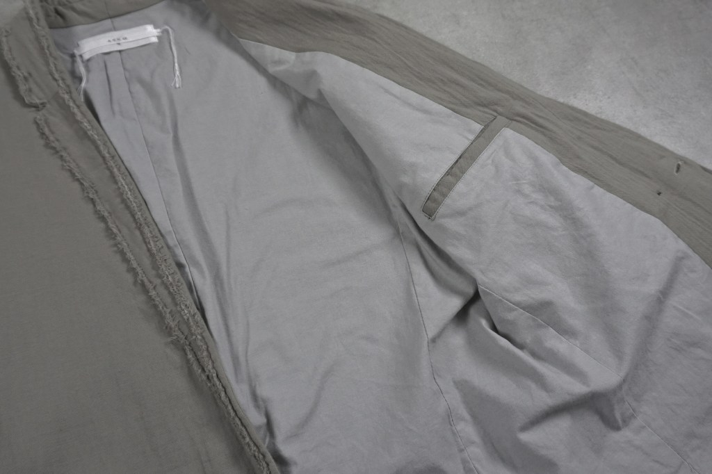 独特な抜け感が滲み出ているのは、もともとノーカラージャケットをベースにしているからこそのもの。その為、ジャケット型のくせにかしこまらない印象を与えます。