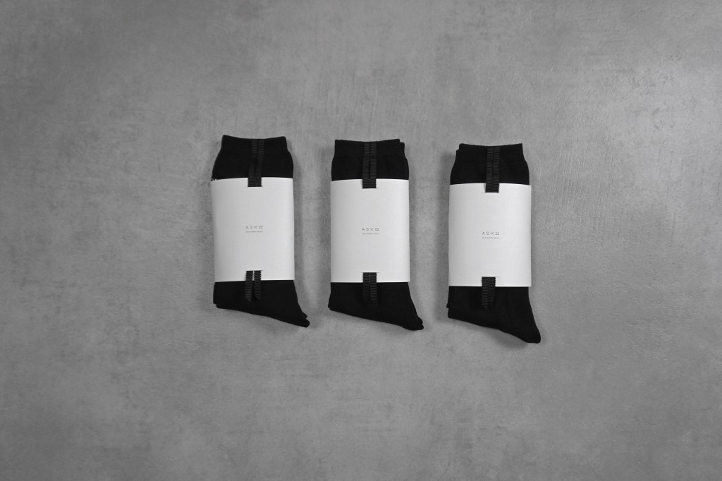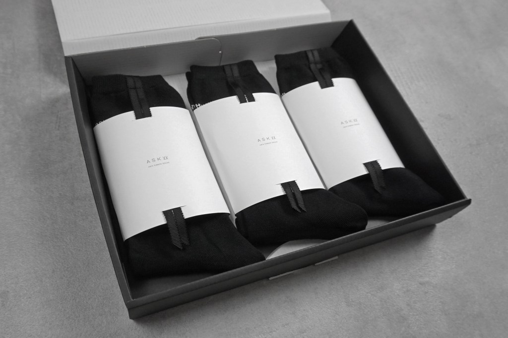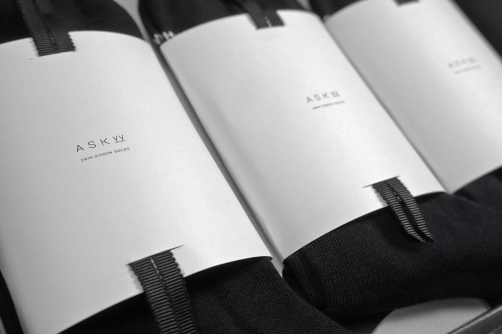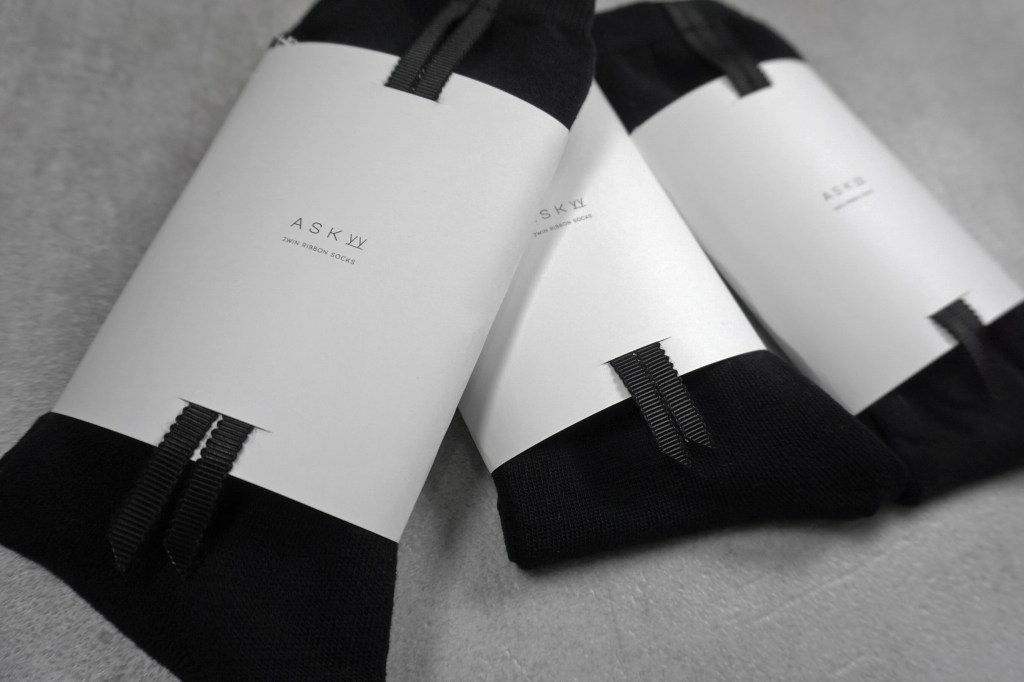 ASKYYってダイレクトに入れるのはまだ小っ恥ずかしいというか、ブランドロゴ直球でズドーンはうちにはまだまだ早いと思っております。なんかフォント的にも相性どうかなとも思っていて。めちゃ変なこだわりですが靴下とかってどう足掻いてもカジュアルなアイテムじゃないですか?そこに無理やり綺麗な書体はなんとなく入れたくなくて。アーカイブでお気に入りの「ASK WHY WHY」を復活させたわけです。