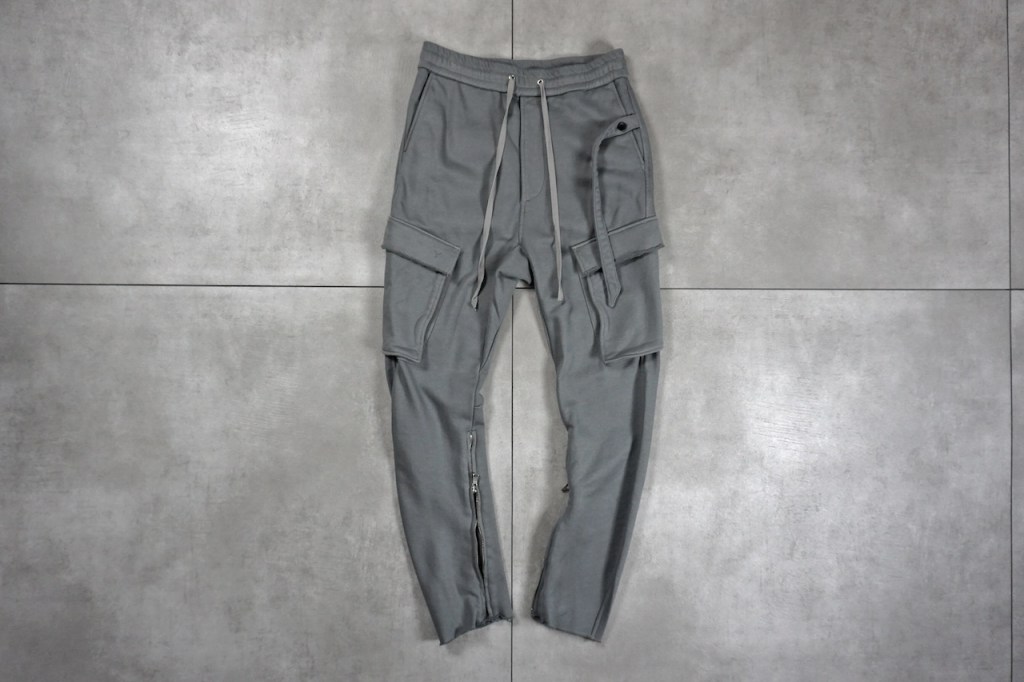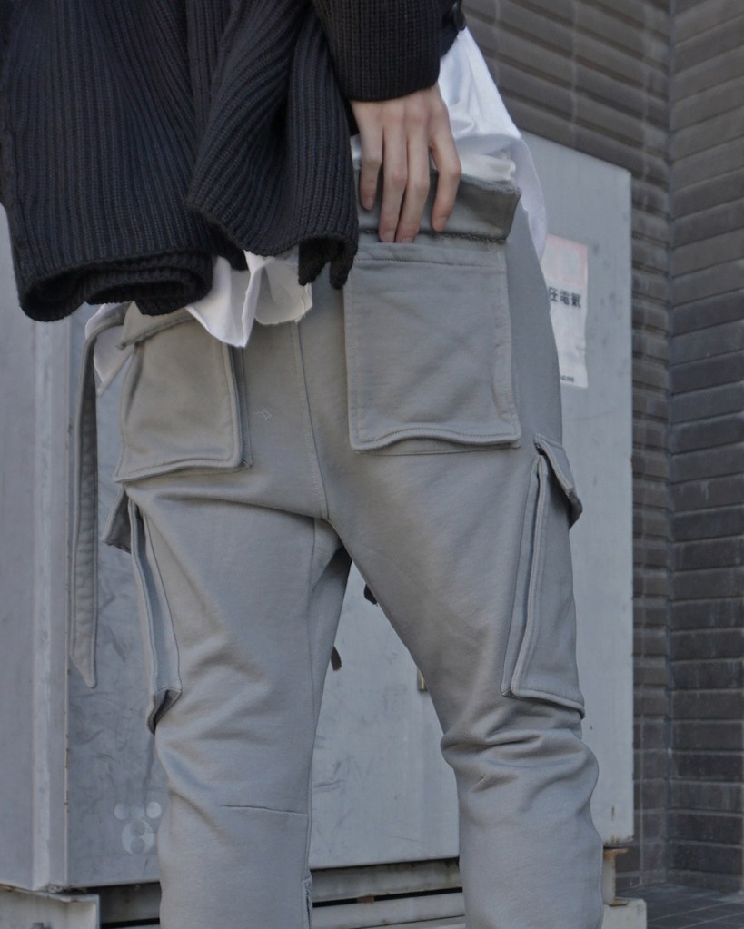 青みあるライトなグレー。クリーンな印象ながら春夏の季節にも適した垢抜け感が売り。デティールも明確でカットソー1枚でも十分な主張をしてくれる主役パンツ。裏毛といえば大体がスウェットの杢グレーが定番で多いと思いますが、この色味はなかなか無いかと思います。こっちは着画より室内の物撮りの方が色味が近いです。
