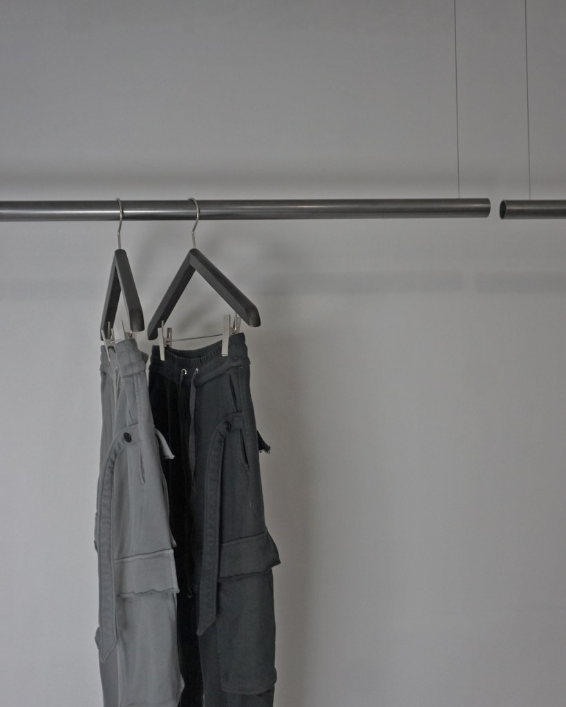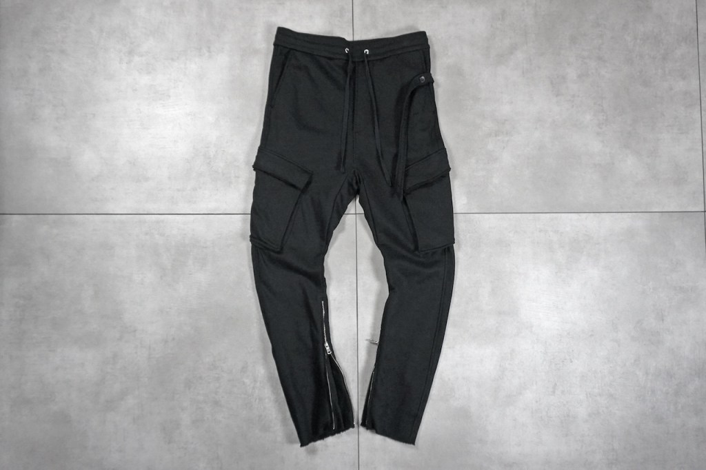 22awにてデビューしたものは「ATELIER PANTS」の3RDモデルであり、エプロンの装飾性がありました。今季に関しては先週のパーカー同様に普遍性を重点化しています。よって、形自体は王道のカーゴを掌握しておりますが、細部へのアプローチやシルエットはASKYYそのものであり、染め特有の褪せ感や退廃性あるギャップも相まって他にない魅力となります。