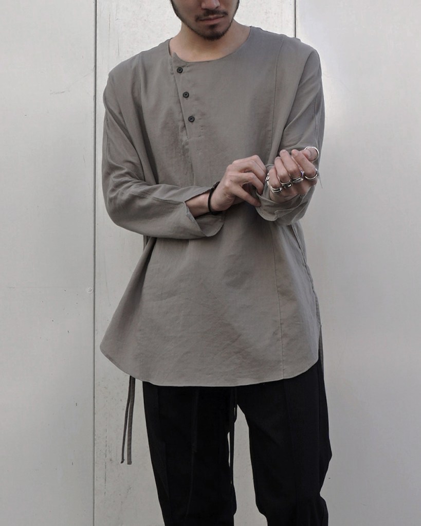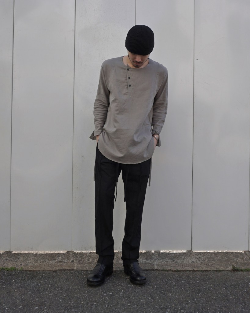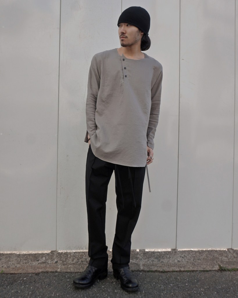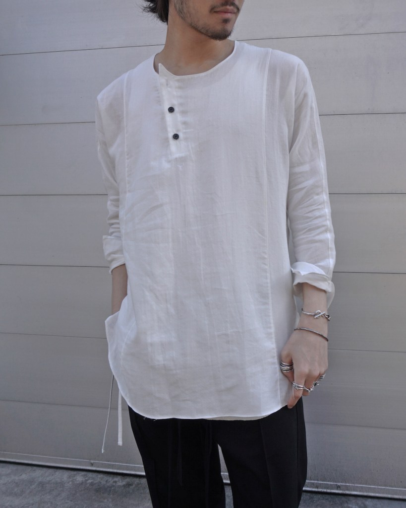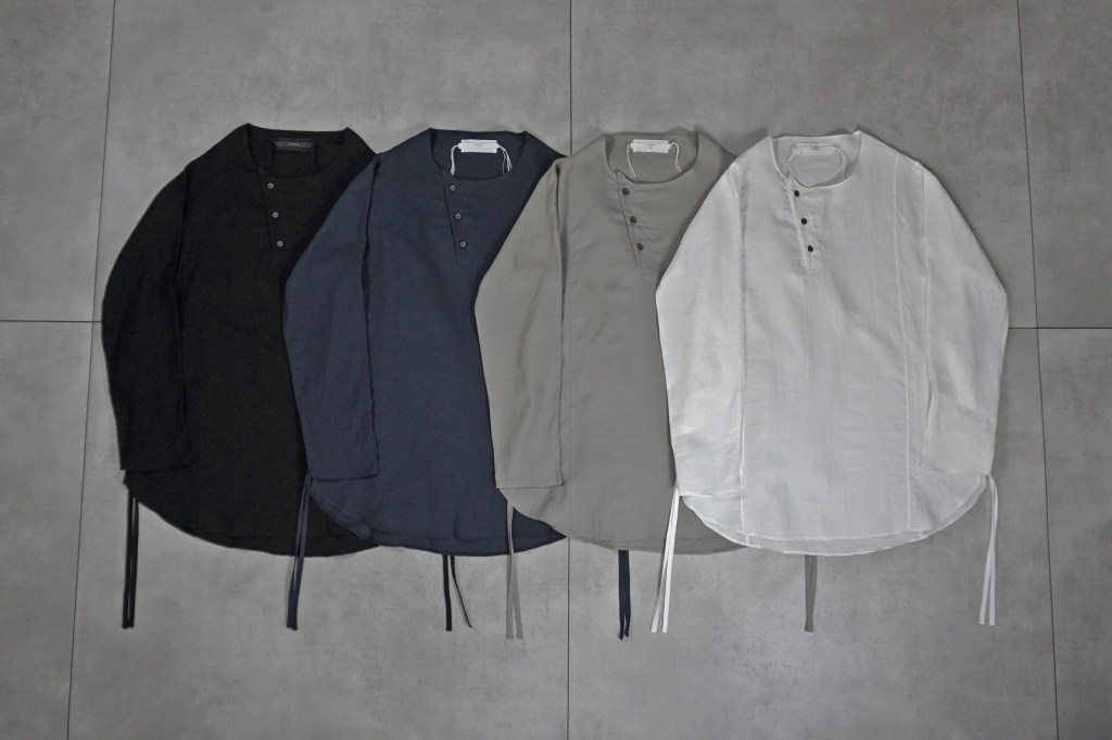 メンズでの拡がりもまだまだ少なく、それでもほぼ毎シーズンしぶとく出し続けているのもうちぐらいだと思いますが、ひたすら究極体を追い求め作り続けてきました。というのもASKYYがブランドを通してご提案したい事ってこの「チュニック」という形に集約されているのかなとも思っていて。