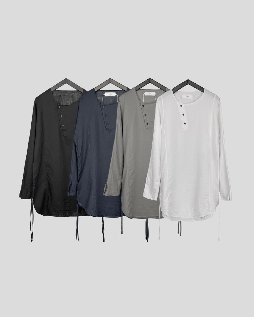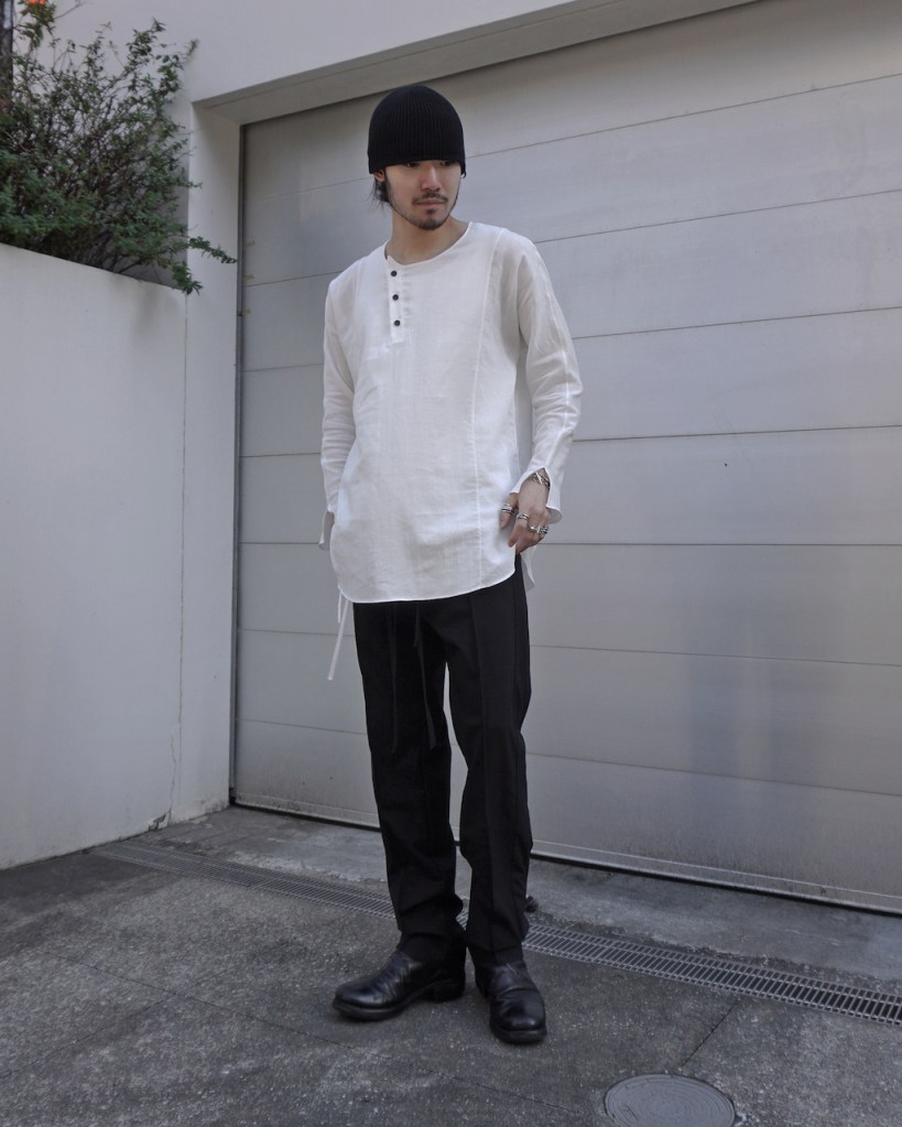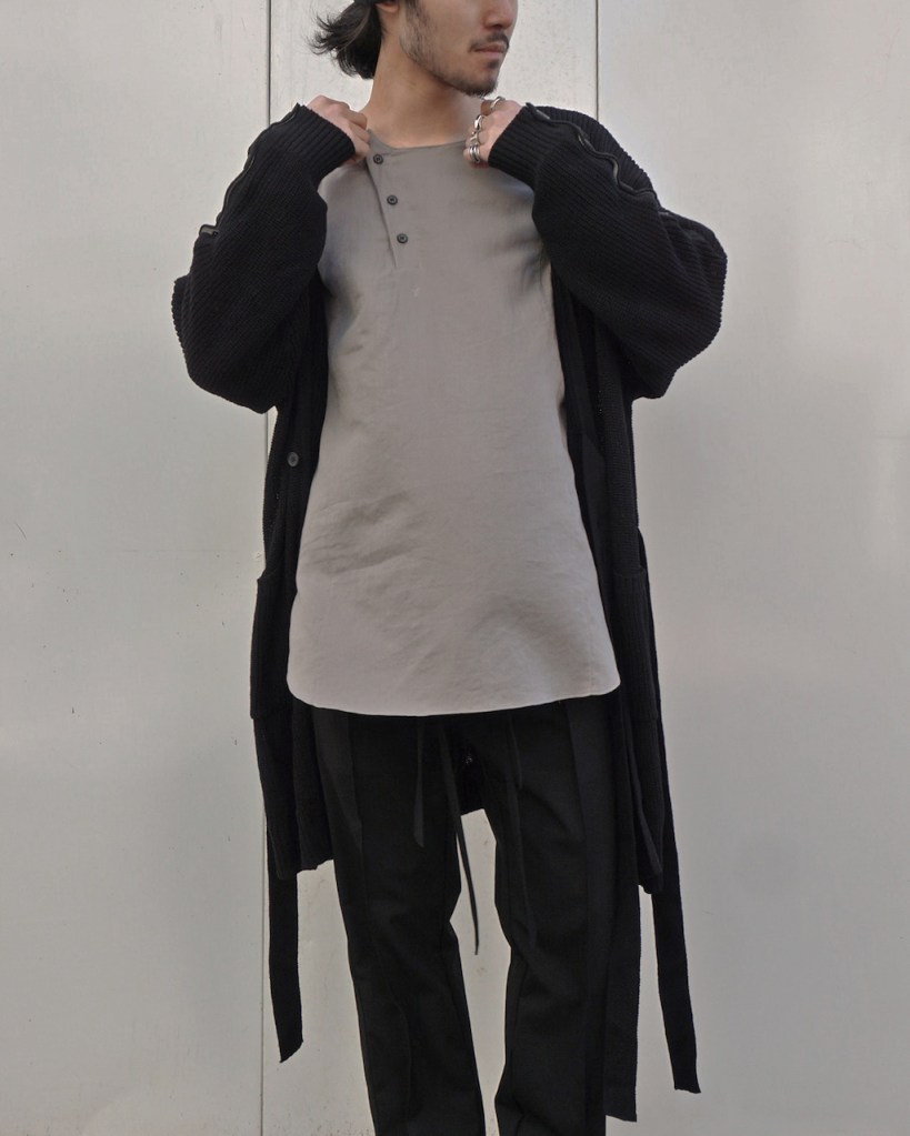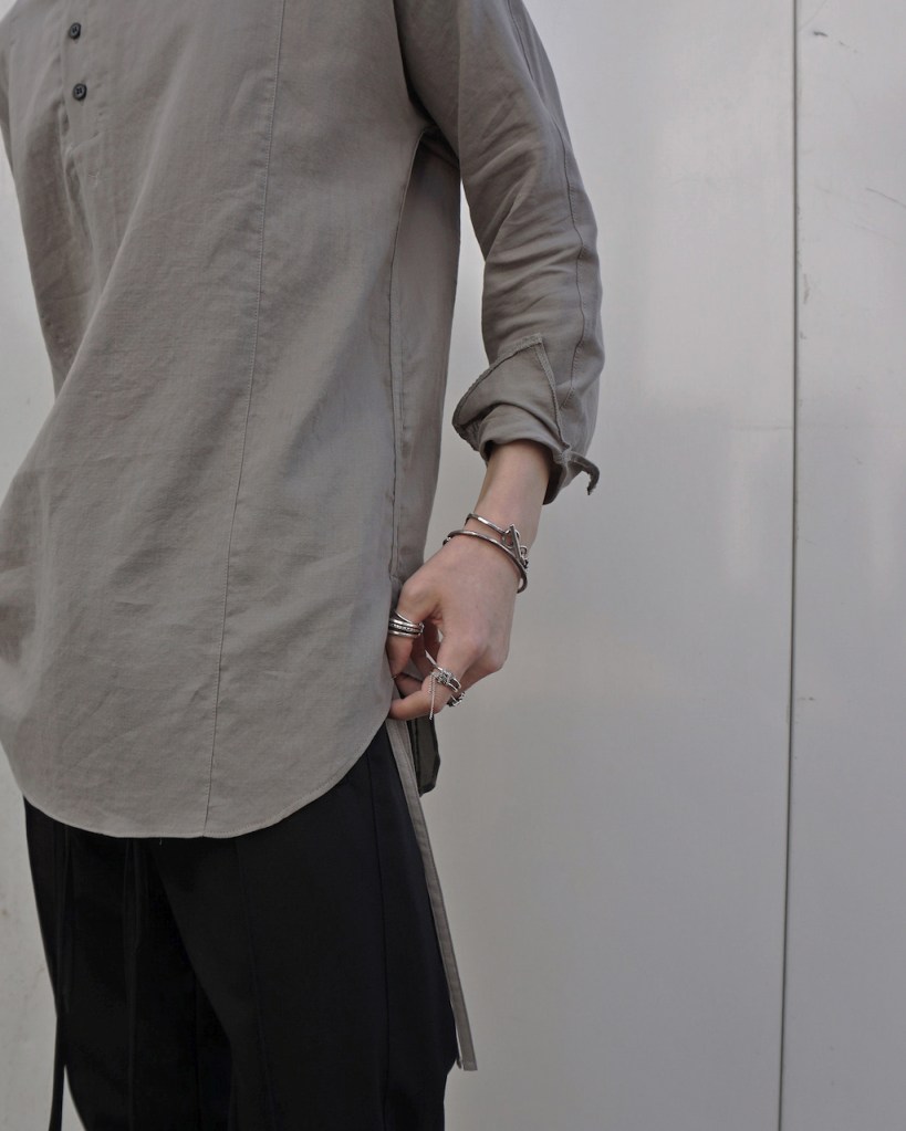 メンズでの拡がりもまだまだ少なく、それでもほぼ毎シーズンしぶとく出し続けているのもうちぐらいだと思いますが、ひたすら究極体を追い求め作り続けてきました。というのもASKYYがブランドを通してご提案したい事ってこの「チュニック」という形に集約されているのかなとも思っていて。