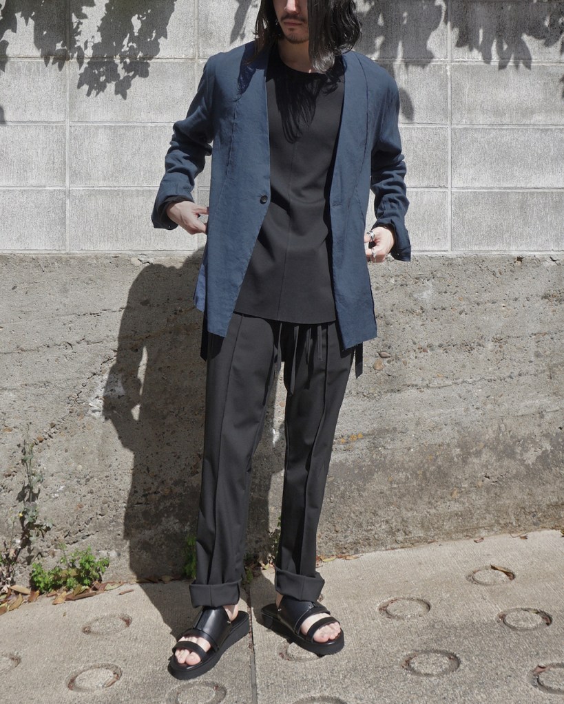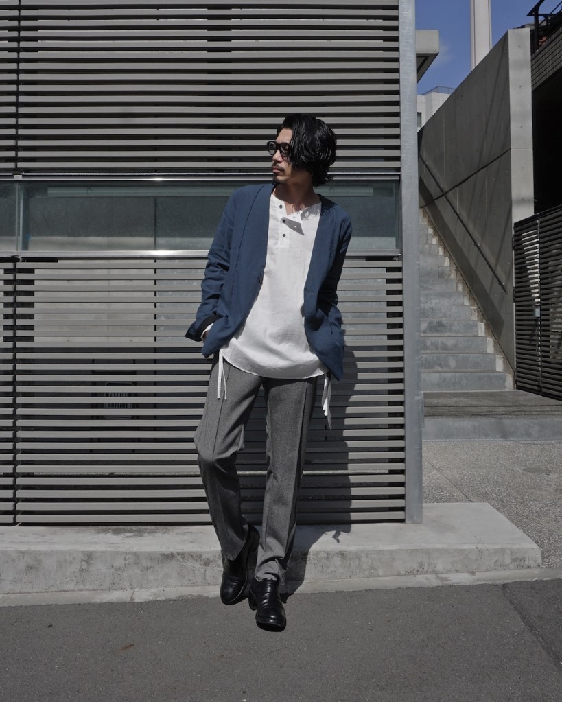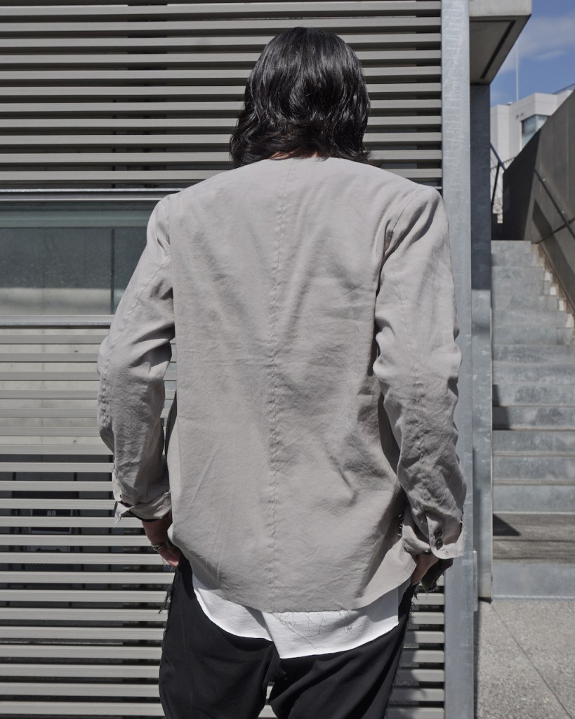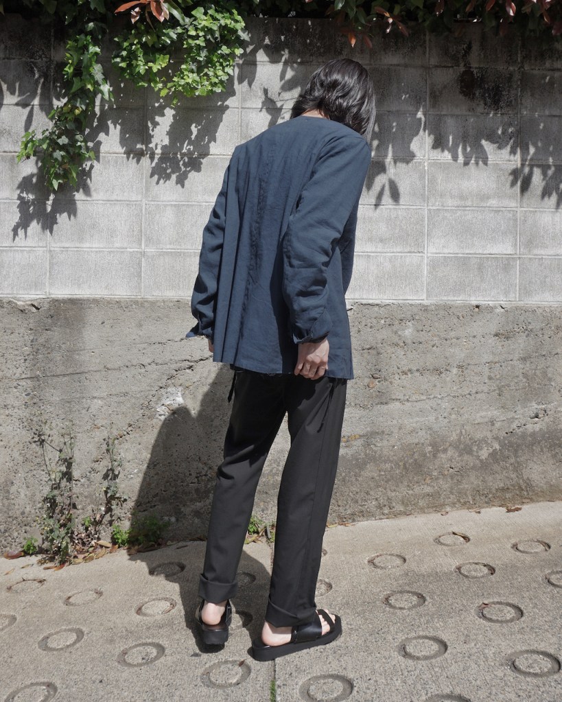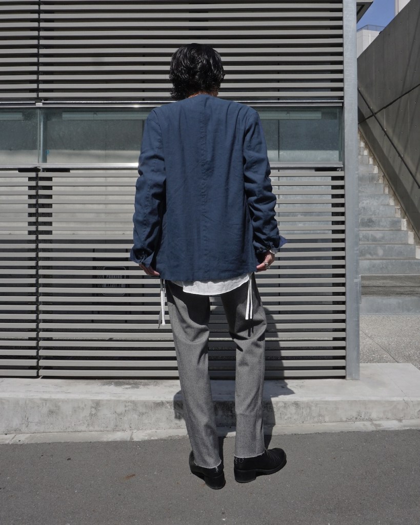 今シーズンの最も推しであり象徴の作品。昨日のブログでもお伝えいたしましたが今日はジャケット、そのセットアップとなるパンツは明日発表予定です。素材がリネンという特性もありますので単体でも使いやすく、セットですと相乗効果を促す大変利便性の高いアイテムとなりますのでぜひご一読ください。