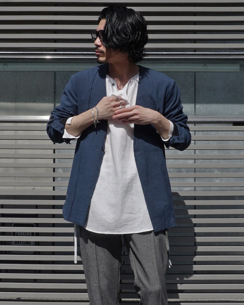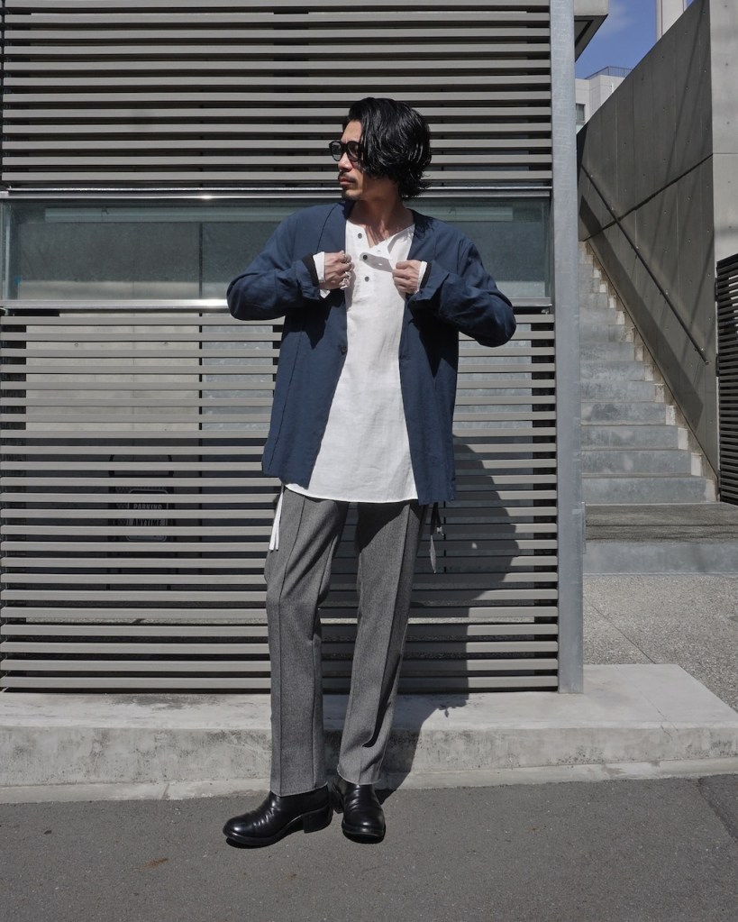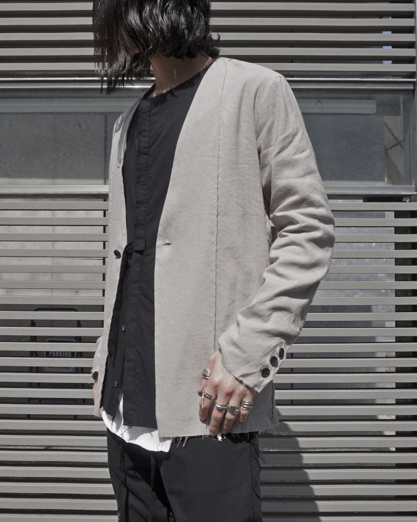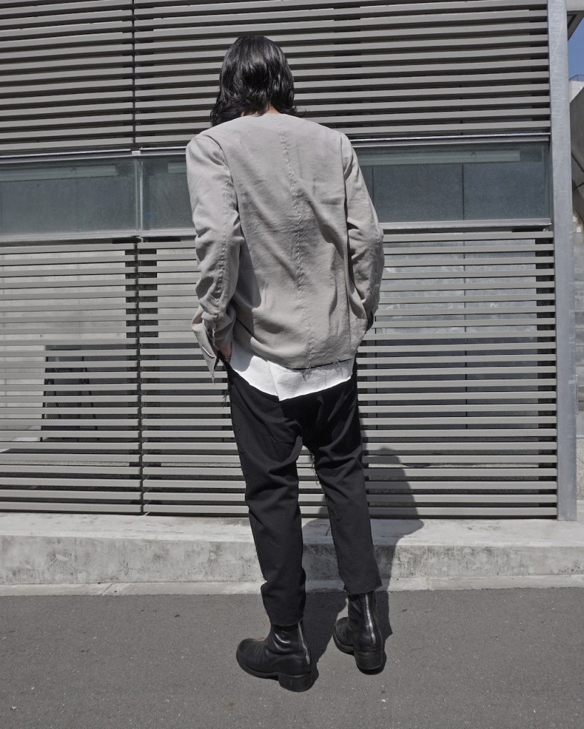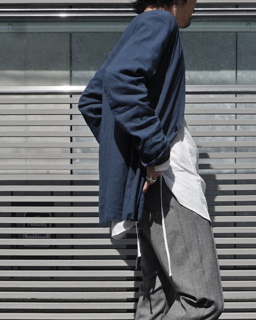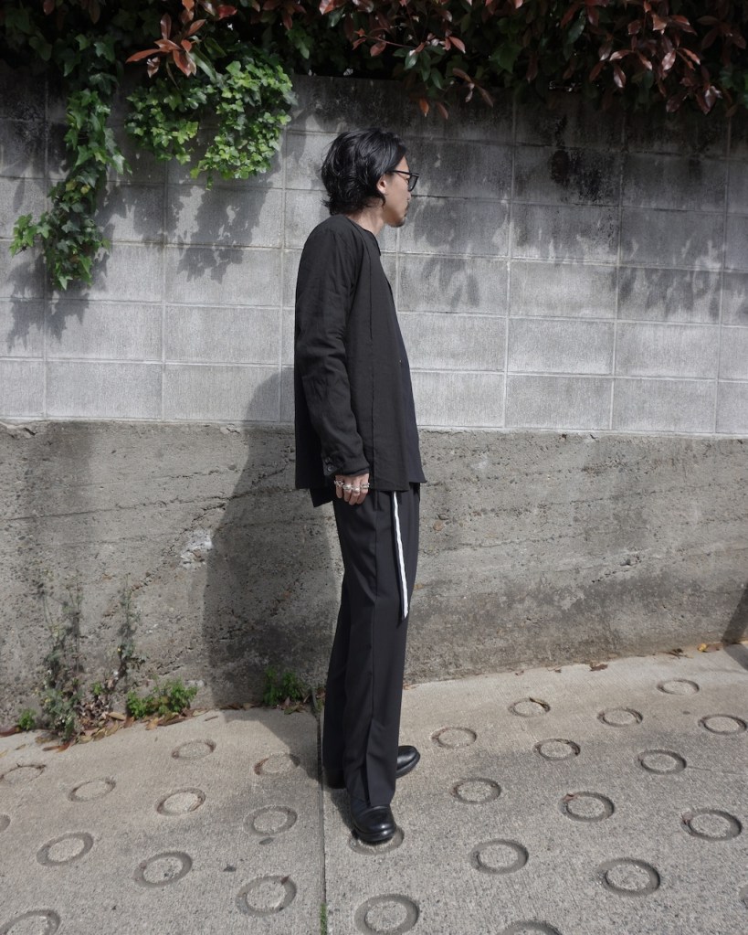 今シーズンの最も推しであり象徴の作品。昨日のブログでもお伝えいたしましたが今日はジャケット、そのセットアップとなるパンツは明日発表予定です。素材がリネンという特性もありますので単体でも使いやすく、セットですと相乗効果を促す大変利便性の高いアイテムとなりますのでぜひご一読ください。
