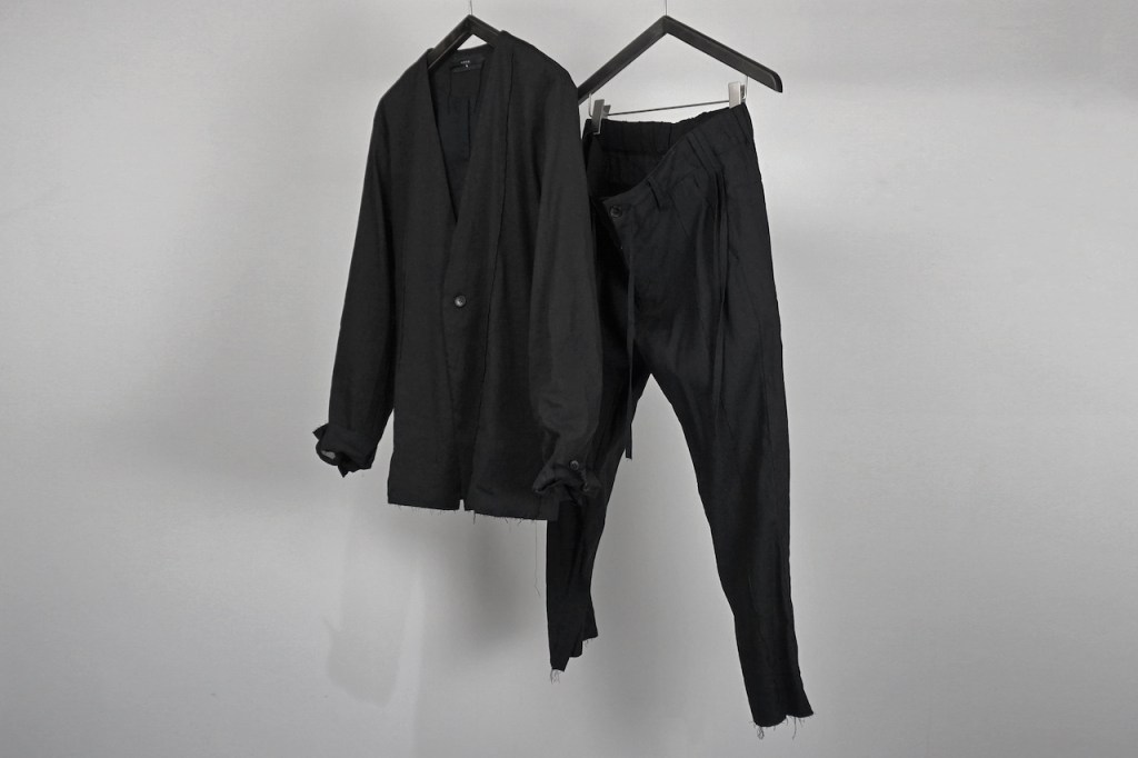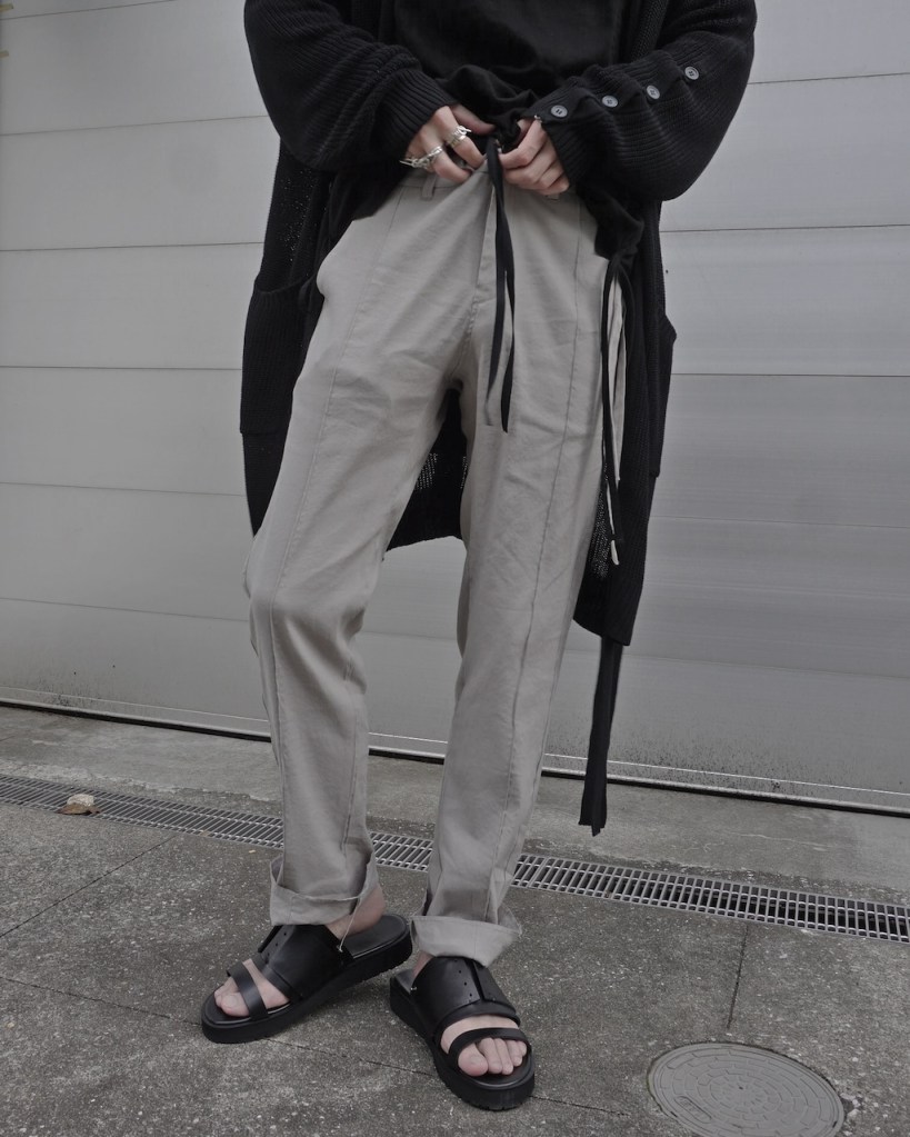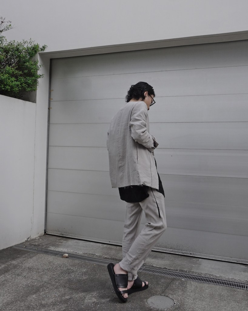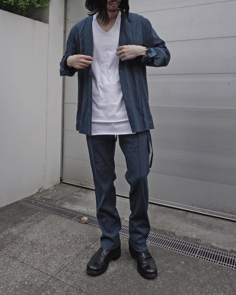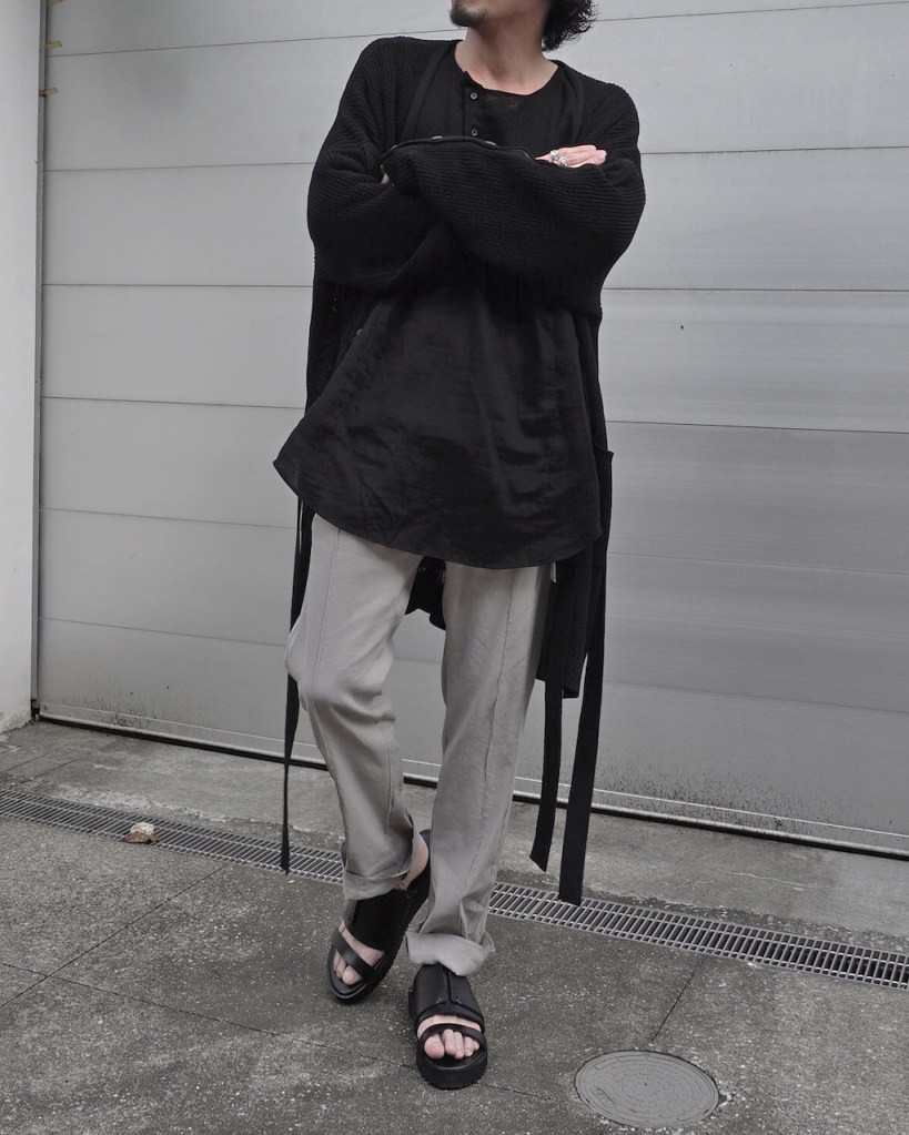 ジャケットのご紹介の時も記載しましたが、黒とはいえリネン特有のヴィンテージ感を兼ね備えた褪せ感。ちゃんと脱力しているあたり夏にふさわしい黒かと思います。(写真素材感つぶれててすみません)