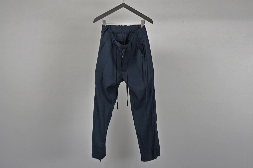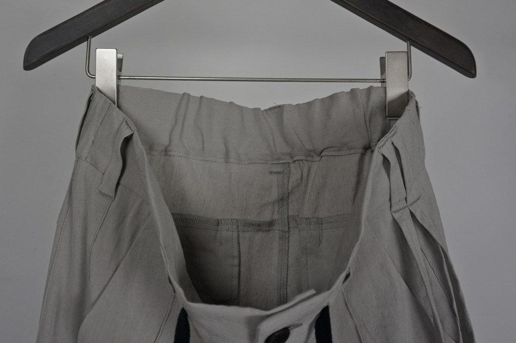 これもまたジャケットと同じ素材なので軽くのご紹介になりますが、ストレッチ性を含めた高品質のリネンを用いています。パンツになるとその機能は本領を発揮しますよね。徐々に皺も立体感がついてデニムの様に育ってくるので楽しみ。