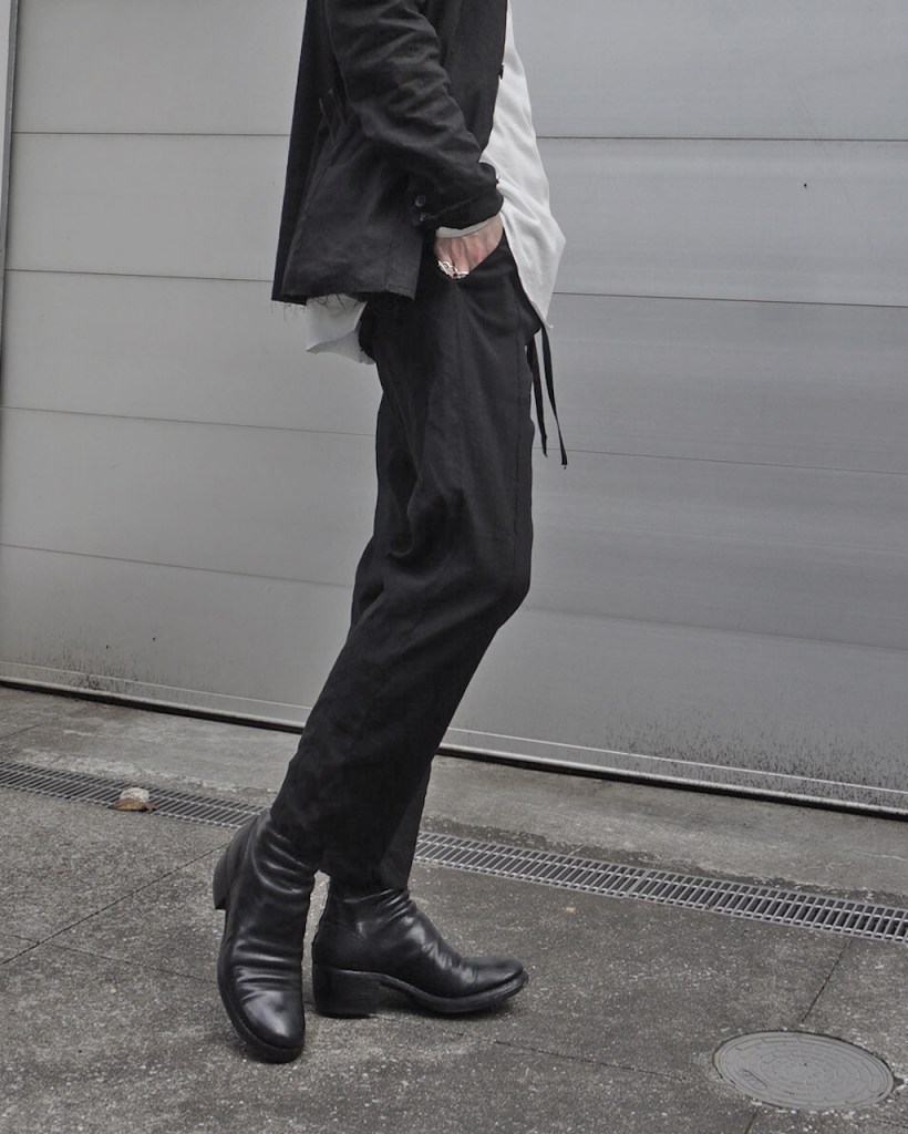 ASKYYブーツやguidiとの相性はもちろん、スニーカーや短靴、サンダルに合わせる場合もこの丈の方がバランスとりやすいか派のお客様も多いかと思います。もちろん丈を直さずにくるっと折り返して履くだけでも印象変わるので色々お試しください。