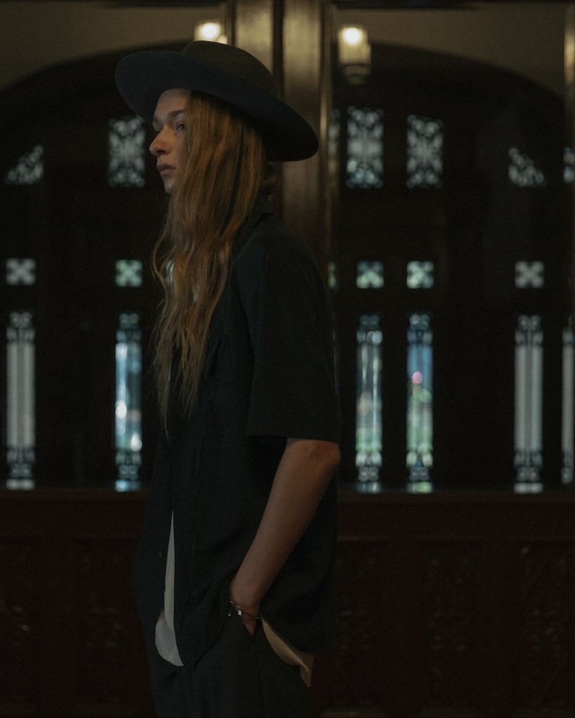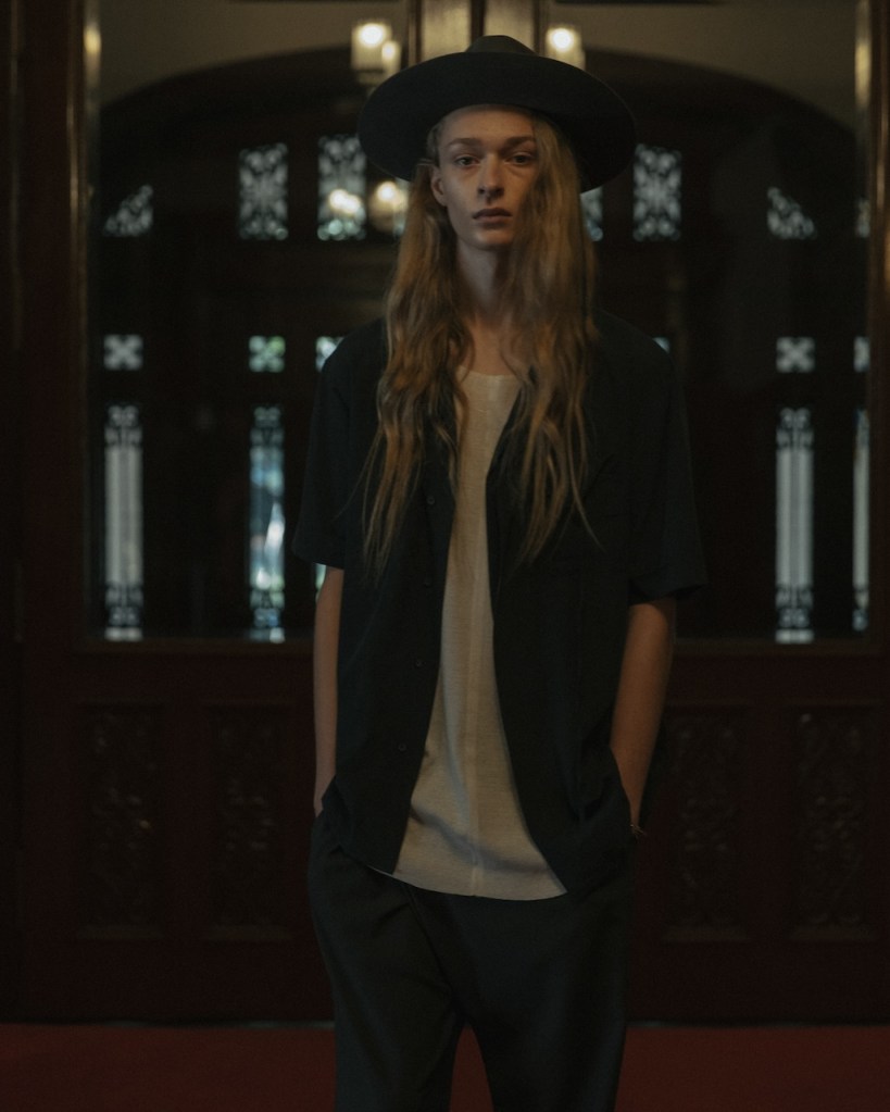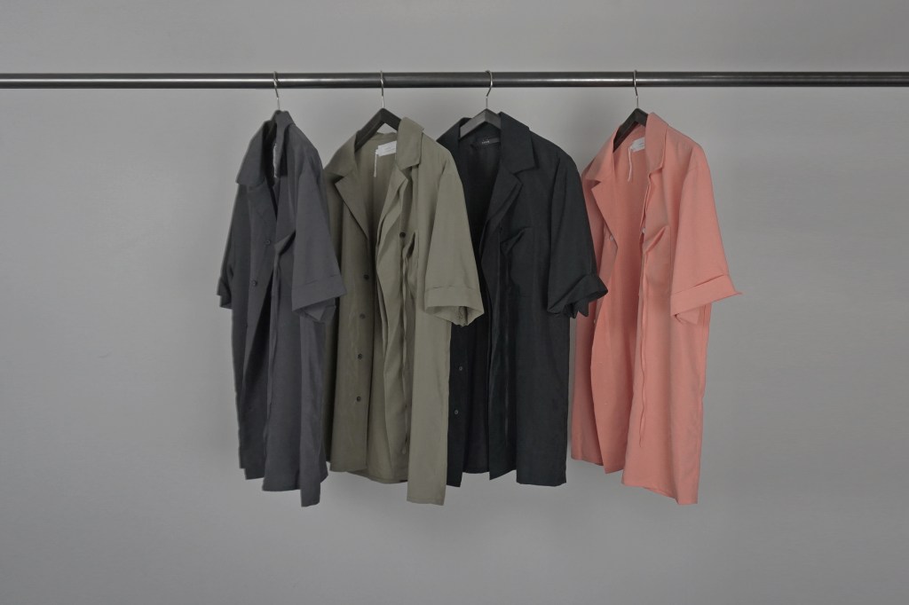 ”夏に溢れかえるお決まりの形”にASKYYフィルターを通したギミック。前作同様にややドロップショルダーのシルエットとゆったりした身頃。アウトラインも前作に寄せました。