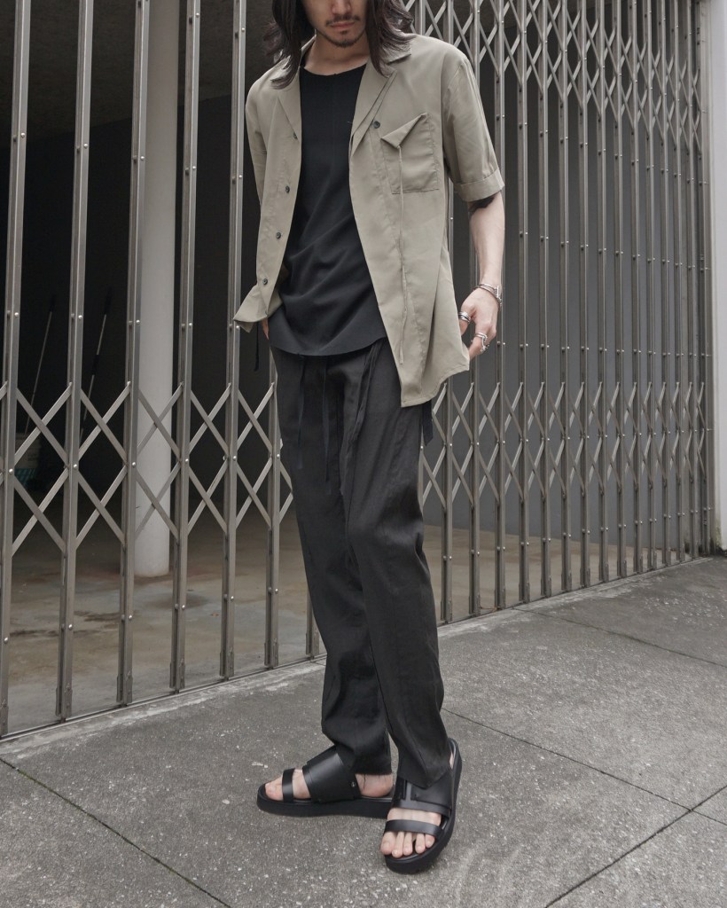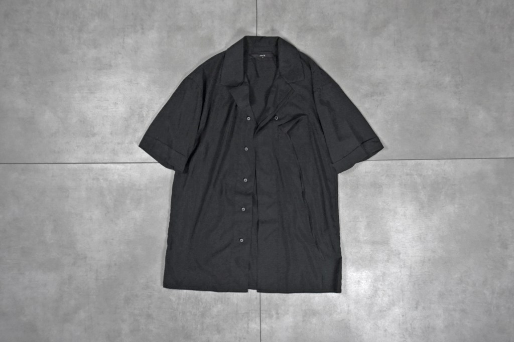 独自のドレープ感、垂れたコードが生み出す繊細な雰囲気。ただカジュアルな開襟シャツではなく、上品と抜け感のバランスを保持した優秀な1着。