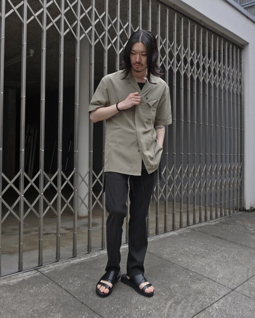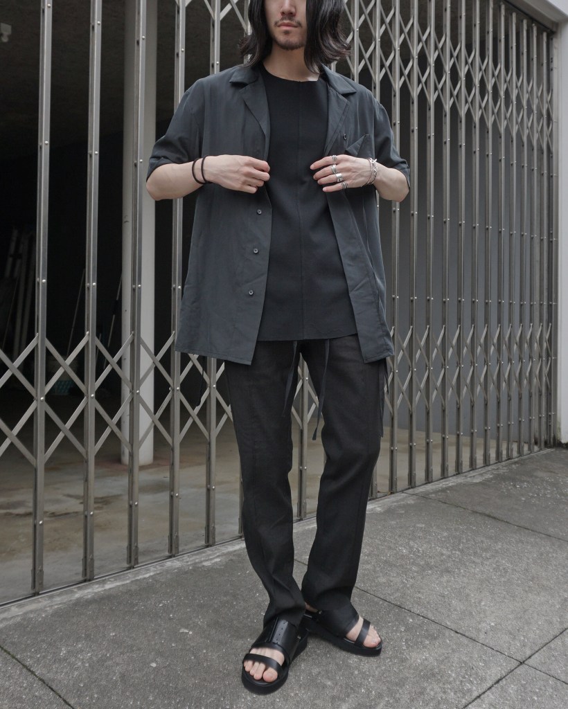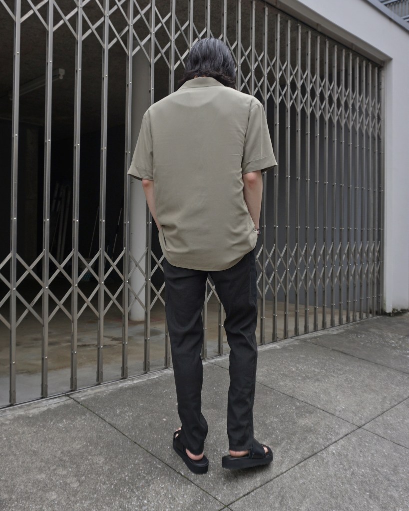 シャツは本来襟付きが主流になってるので違和感なく取り入れて頂ける形。生地感は前作と似たようなトロッとした素材。サイズ感も程よいゆとりがあるので近しいものがあります。ここからは細部について深掘りしていきます。