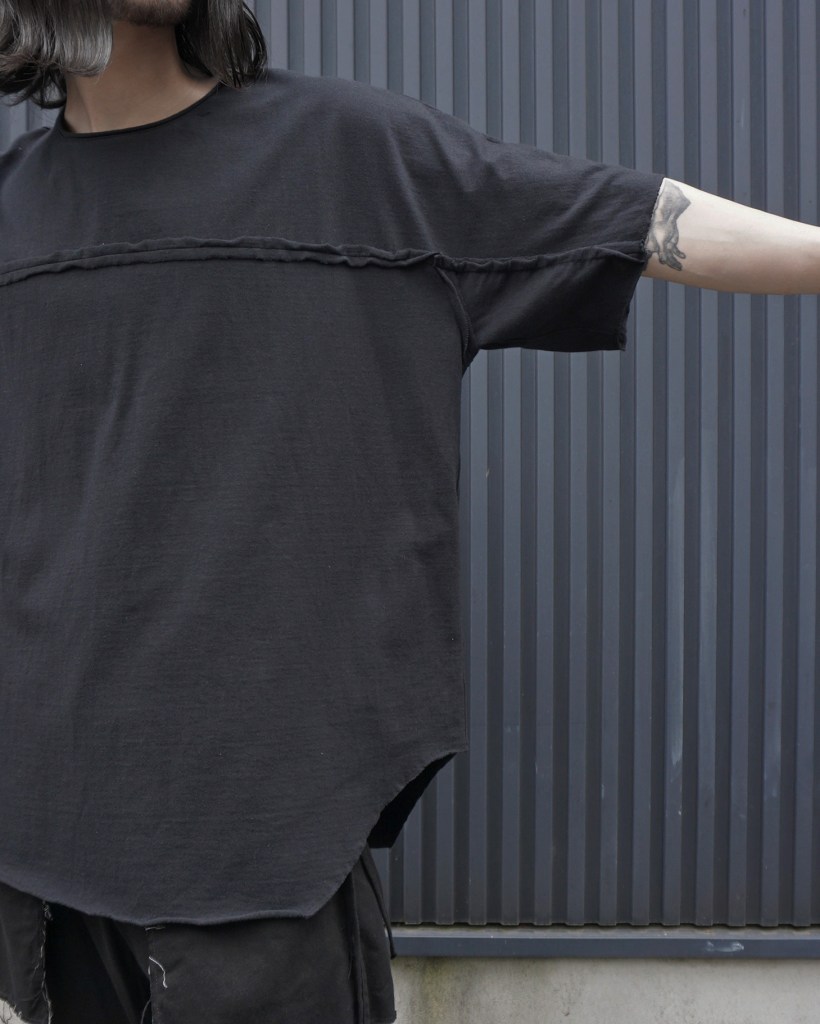 いつもカテゴリレスで新しいものを作るので名前がよくわかりませんが、メリットとしては肩線がないので明らかなオーバーサイズの雰囲気にならないというか。ドロップショルダーなんだけど、肩がドロップしていないという。