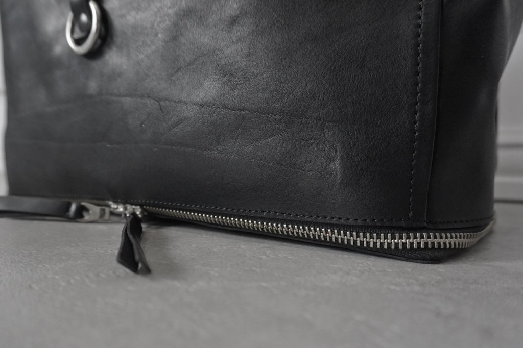 オイルの含有量も高いのでバックとして必要な柔らかさも十分あります。革ものは特に妥協なく一級品を用いるのでその点もご安心ください。よく使う言葉ですが、スーツのような品のある服にも合えば、カジュアルやモードにも合う。とても優秀です。