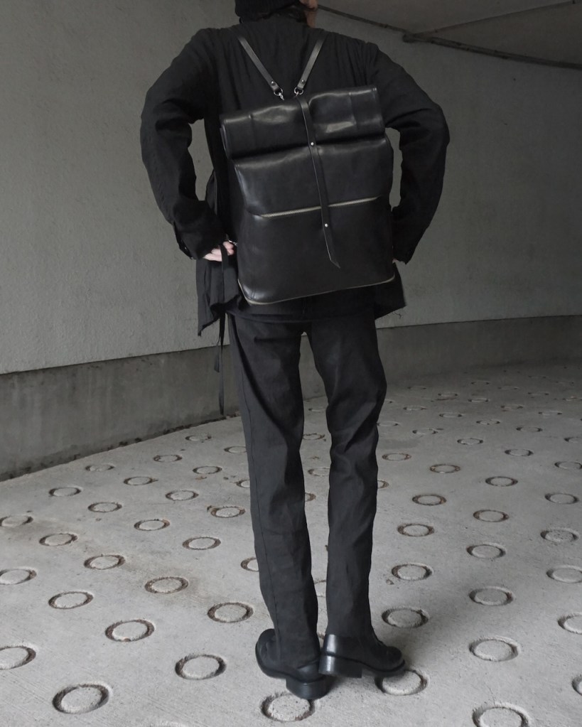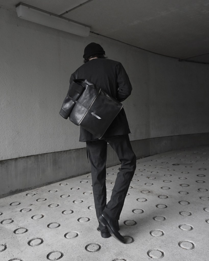 [バックパック or メッセンジャーバック or クラッチ の3WAY] という機能を持ち合わせた類を見ないバックがここに完成。ミニマリストの極みとなる作品。