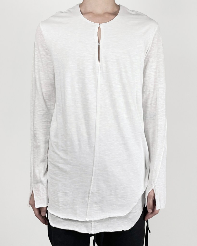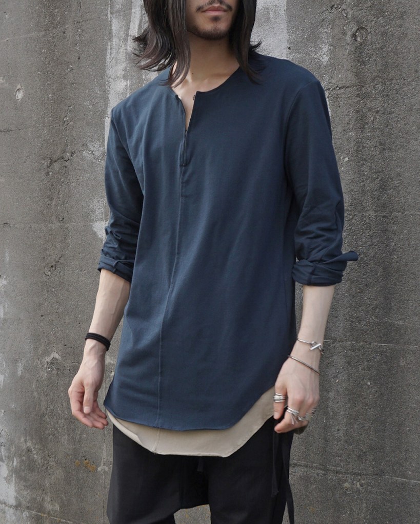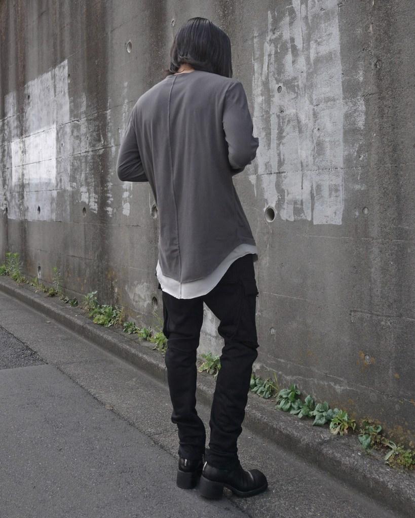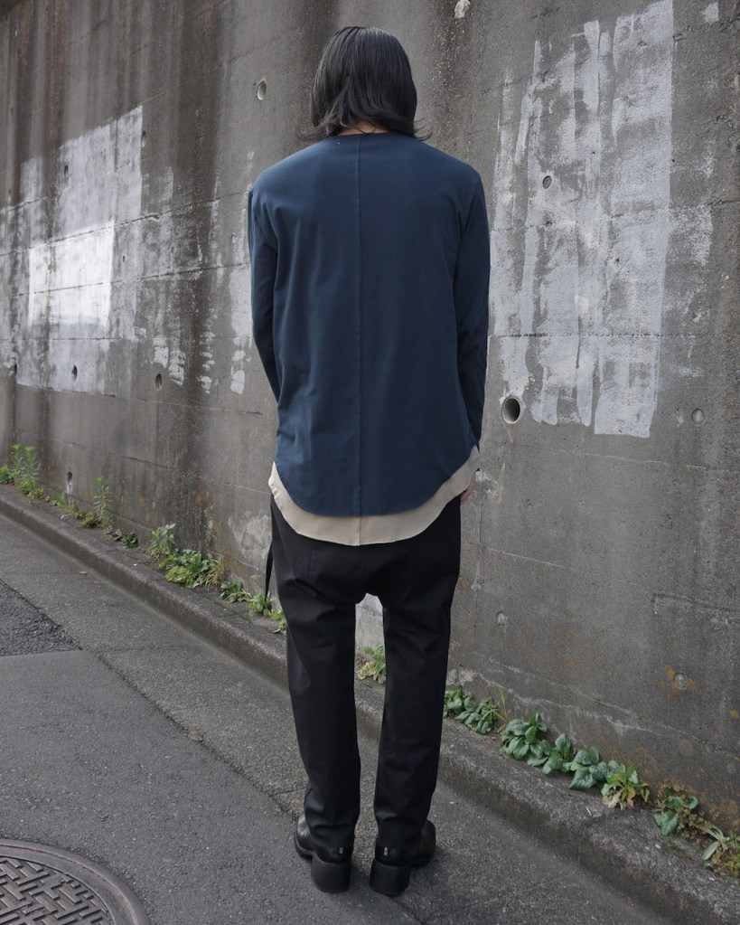 昔からのお客様はご存知かと思いますが、ブランド創設時からリリースをしていたまさに原点ともいえる作品。1枚で透け感を気にせず着用できる合理性、細身のパンツにも相性の良い縦長のフォルム、無駄を削ぎ落としたミニマルな形、レイヤーのギミックがもつ少しのアクセント。チュニックをひたすら作り続けているメンズブランドもそうそうないと思いますが、ASKYYの象徴でありアイデンティティとも言える不屈のアイコンとなります。