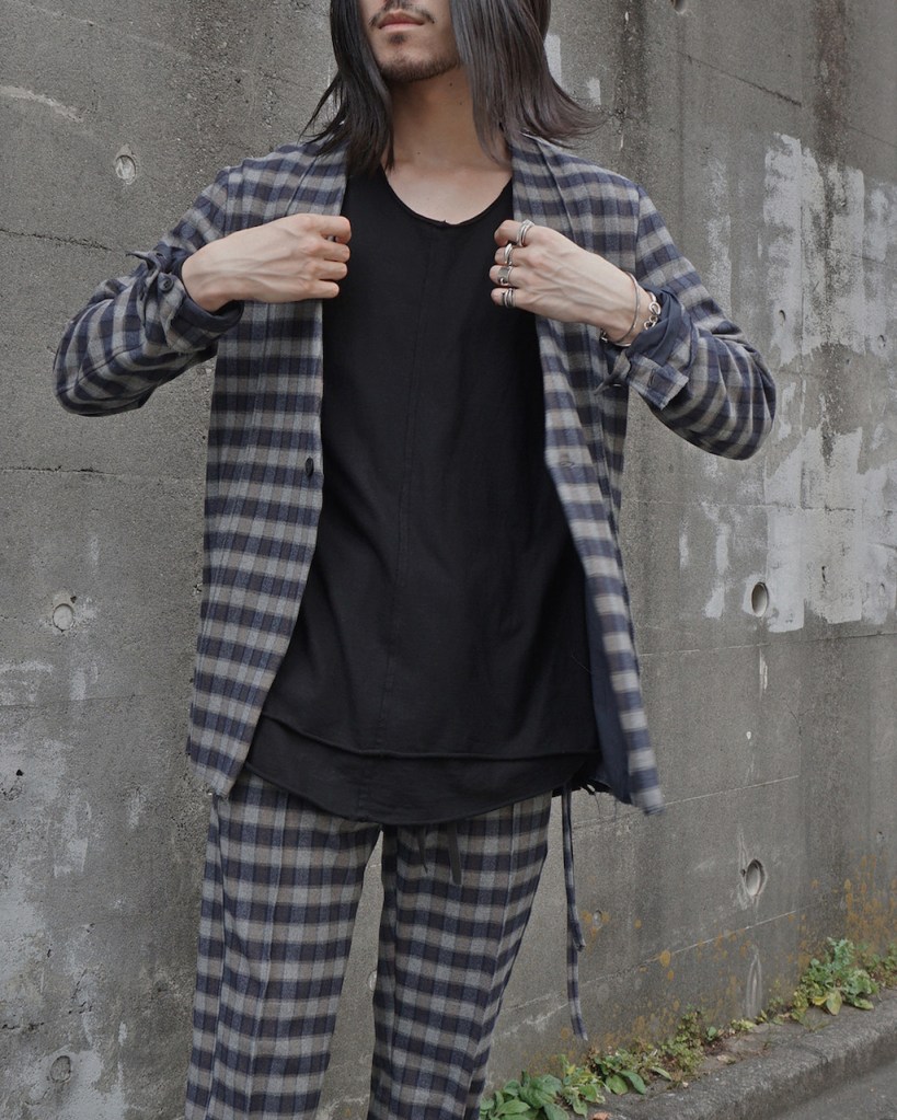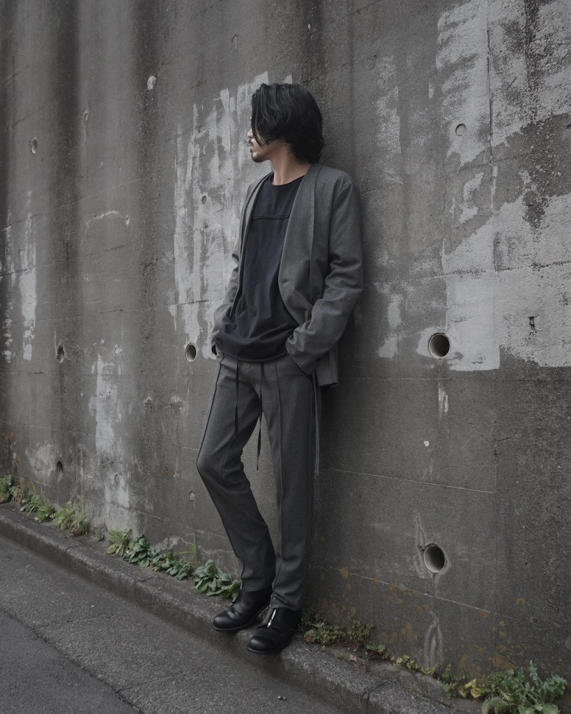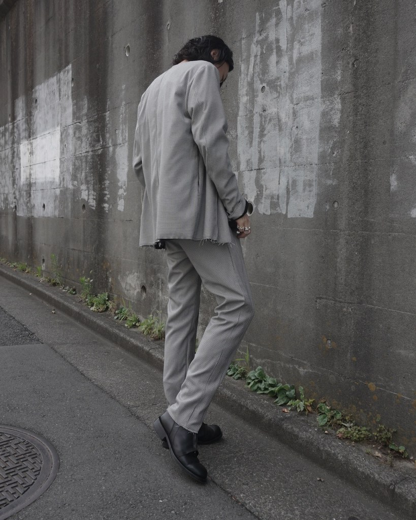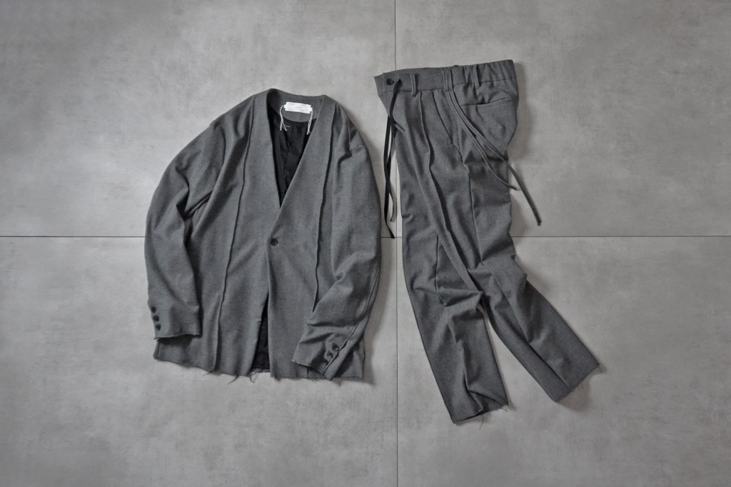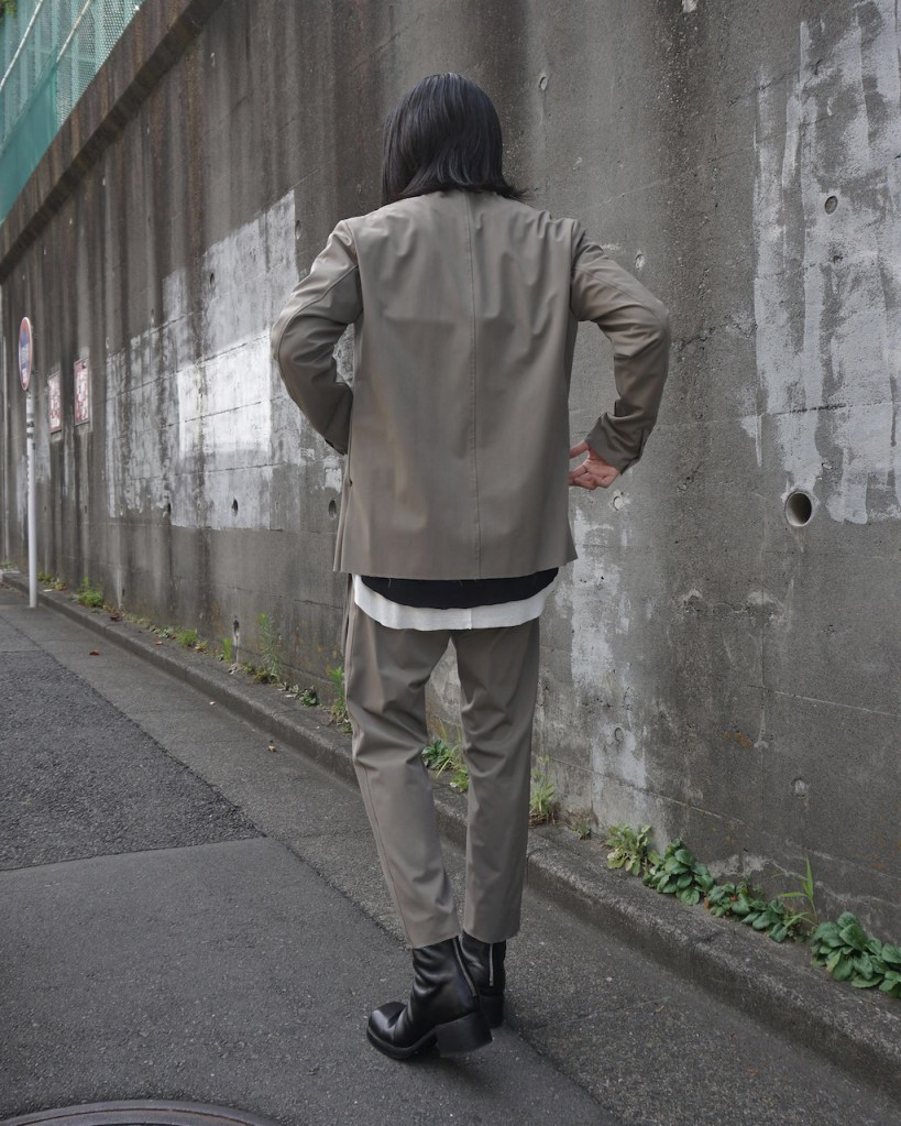 ジャケットもスラックスもピンタックが最たる特徴で、随所にASKYYならではのギミックが搭載されているモデル。24SSでは本当にたくさんのお客様にご好評いただいた、いわば鉄板の形とデザインで汎用性の高さが何より売りです。