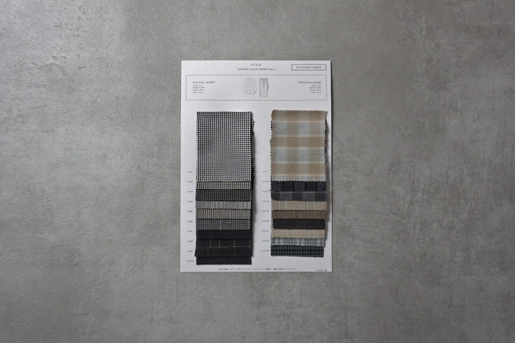 カットソーとチュニックのプロセスを踏みつつ、やっとここに辿り着けました。ASKYYのスーツをオーダーしたいというお声も多く頂いておりましたので形に。